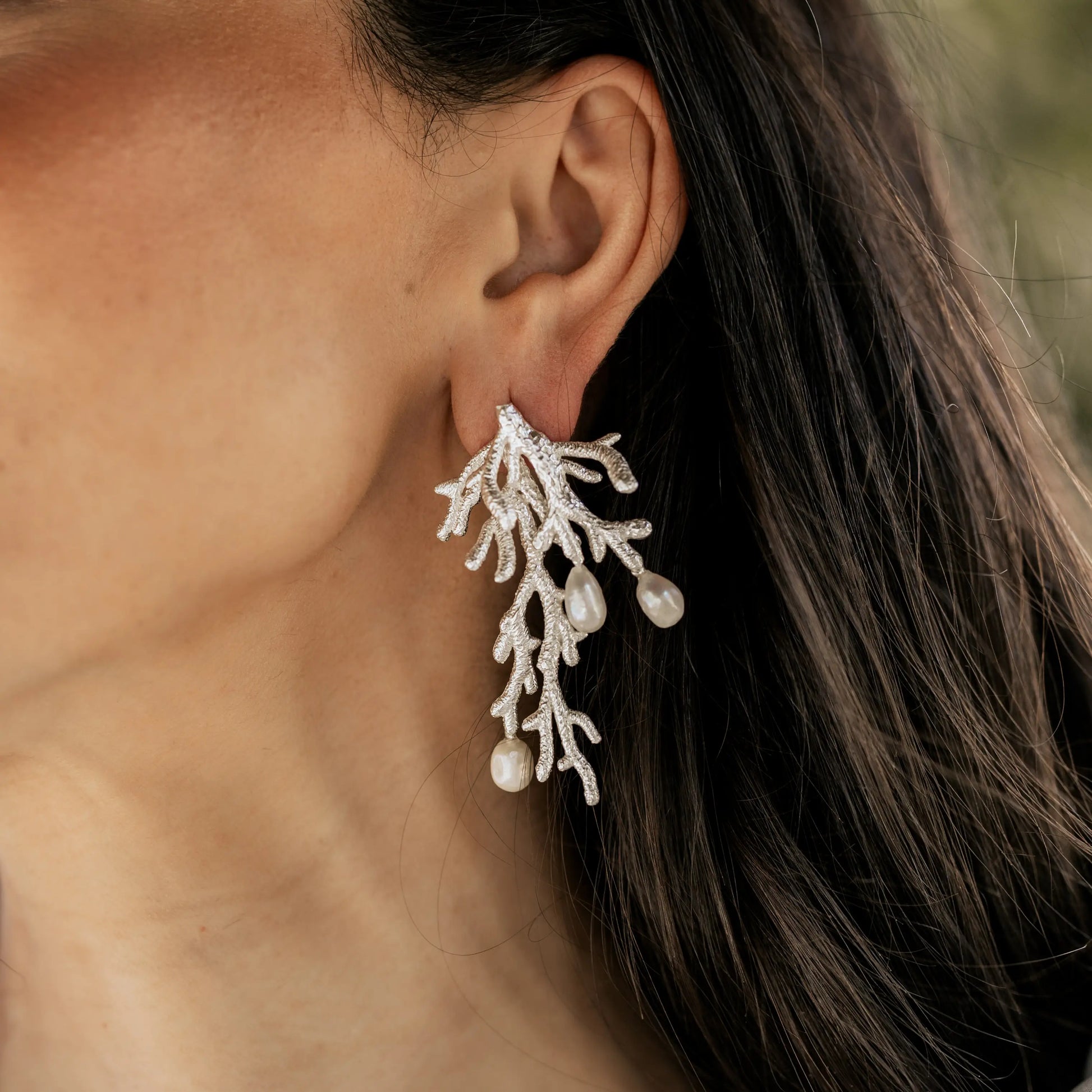 Pendientes en forma de coral con algunas piedras en sus extremos para añadir un toque especial.