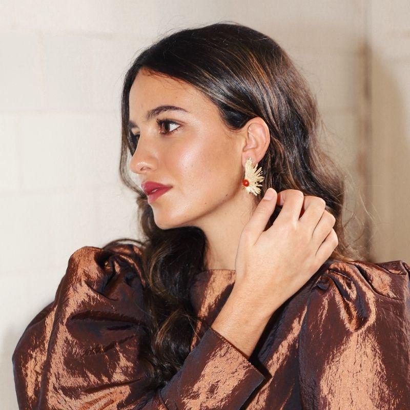 Este diseño moderno presenta muchas líneas superpuestas de manera irregular, algunas más largas que otras, partiendo de una piedra circular. Estos pendientes ofrecen un corte contemporáneo, perfecto para desafiar las líneas clásicas y añadir un toque discreto de color y, sobre todo, luz a tu look.