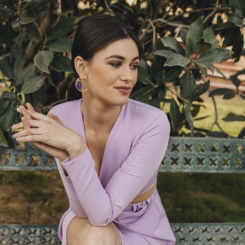 Lúcelos para un look que destaque por su creatividad y elegancia contemporánea. Estos pendientes son ideales para quienes buscan una joya que fusiona la simplicidad del aro con la distinción de la piedra, creando un accesorio llamativo y lleno de estilo.