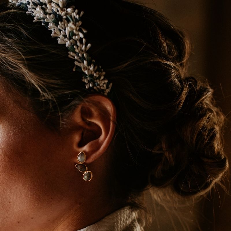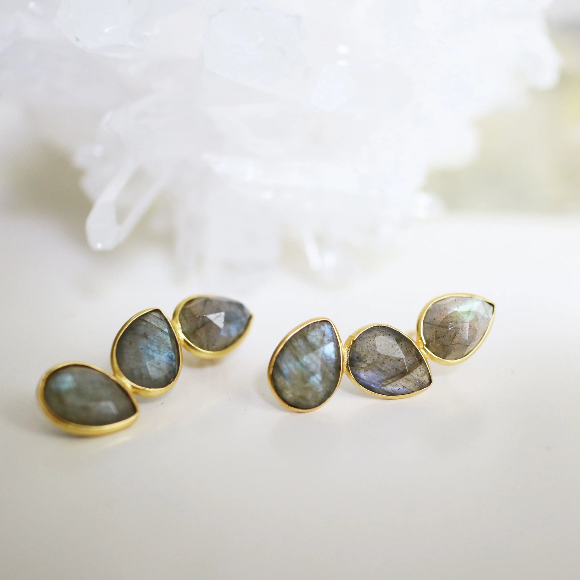 Este diseño minimalista presenta tres piedras dispuestas hacia abajo en forma de gota, añadiendo un toque elegante y sutil a cualquier conjunto, ya sea para el día a día o para ocasiones más especiales.