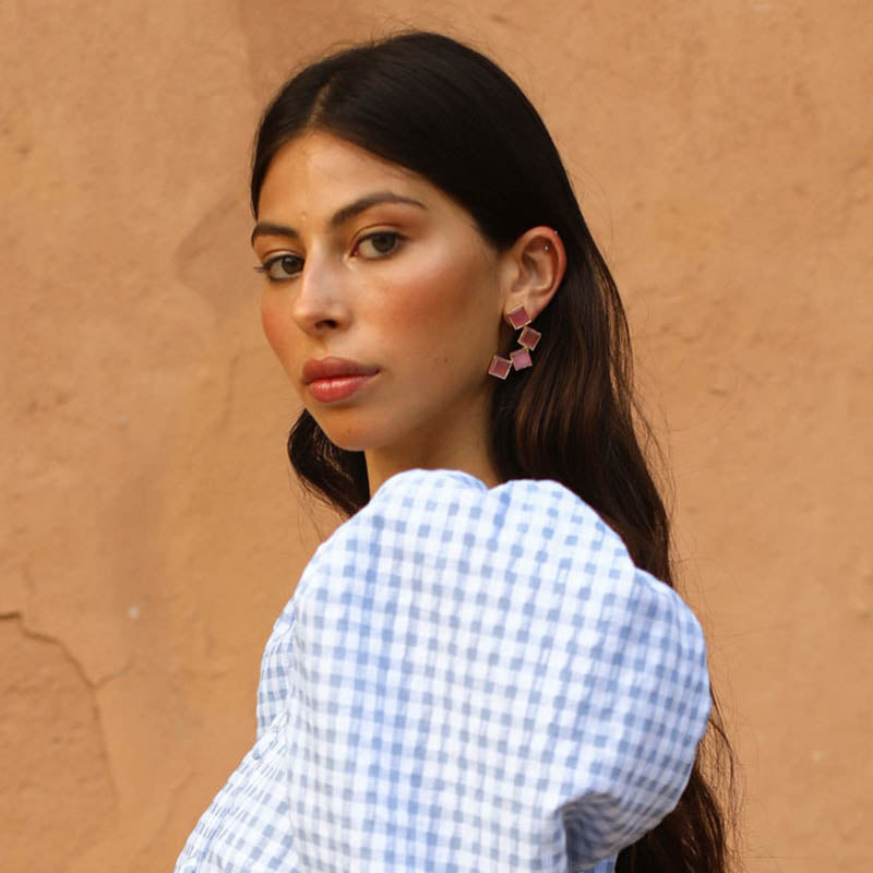 Pendientes con piedras en forma de cuadrados. Opta por la originalidad con nuestro modelo de líneas limpias. La forma de media luna destaca tu rostro, brindando luminosidad sin esfuerzo. Perfecto para quienes buscan un toque distintivo con simplicidad y estilo.