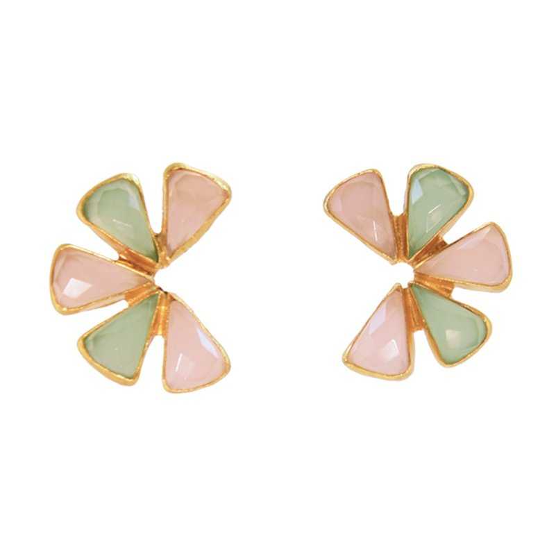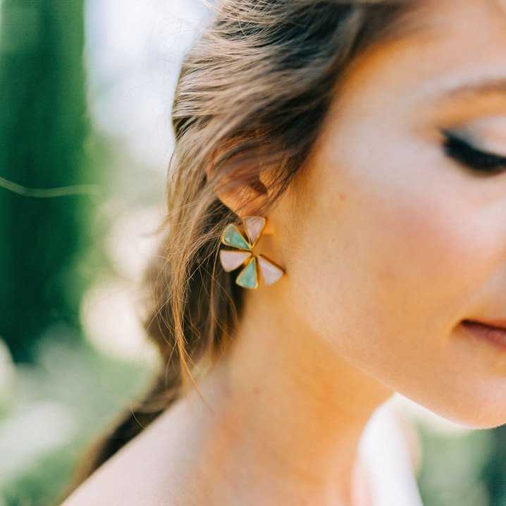 Pendientes con cinco piedras dispuestas en forma de triángulo, creando un círculo incompleto. Su diseño original y versátil se adapta tanto al día a día como a ocasiones especiales.