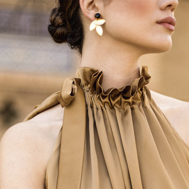 Originales pendientes formados por tres hojas artesanales con una piedra circular. Este diseño único destaca por su elegancia y singularidad. Además de ser cómodos de llevar, también son muy versátiles y fáciles de combinar.