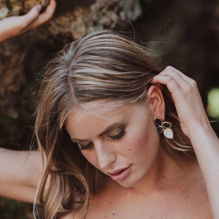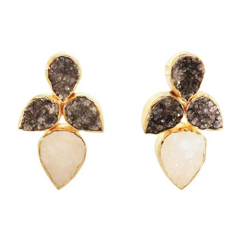 Pendientes con tres piedras en la parte superior y una piedra en forma de gota invertida de mayor tamaño en la parte inferior. Este accesorio imprescindible en tu armario te salvará en diversas ocasiones y eventos. Además, la piedra directa en la oreja es ideal para ocultar lóbulos rajados.