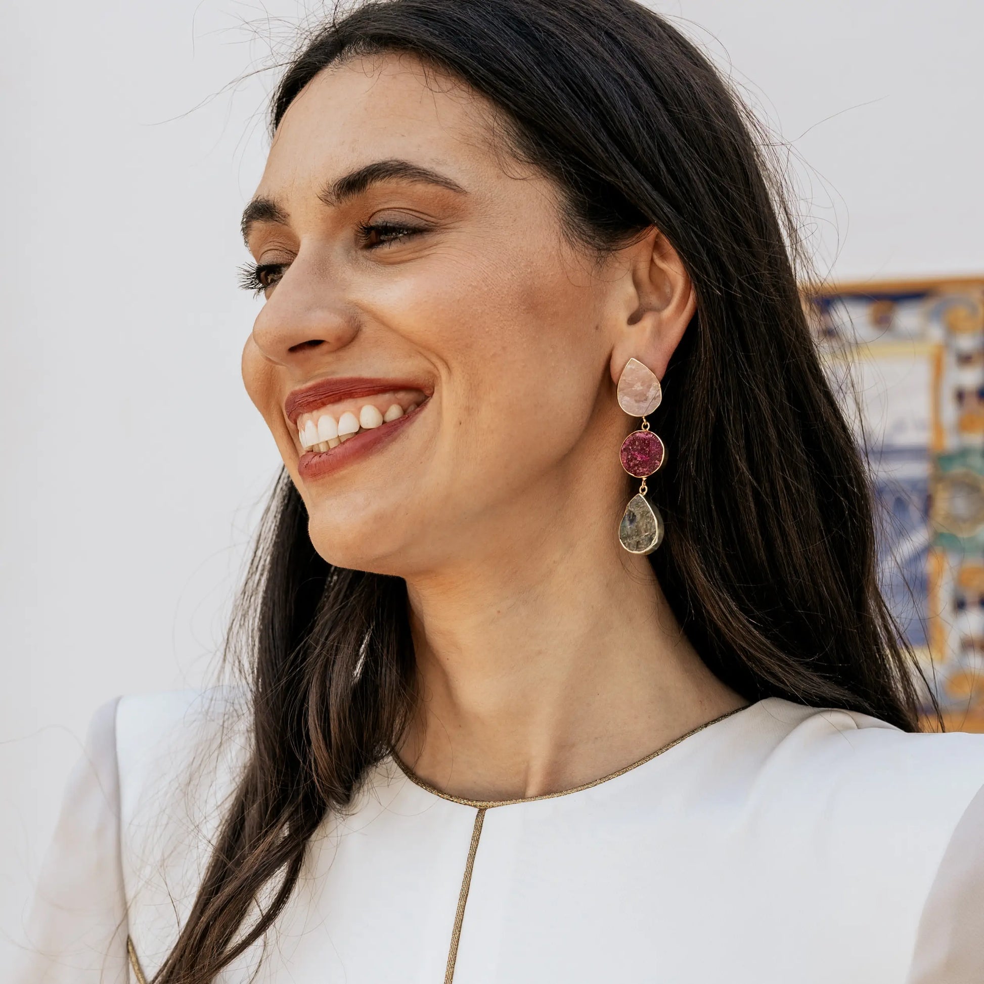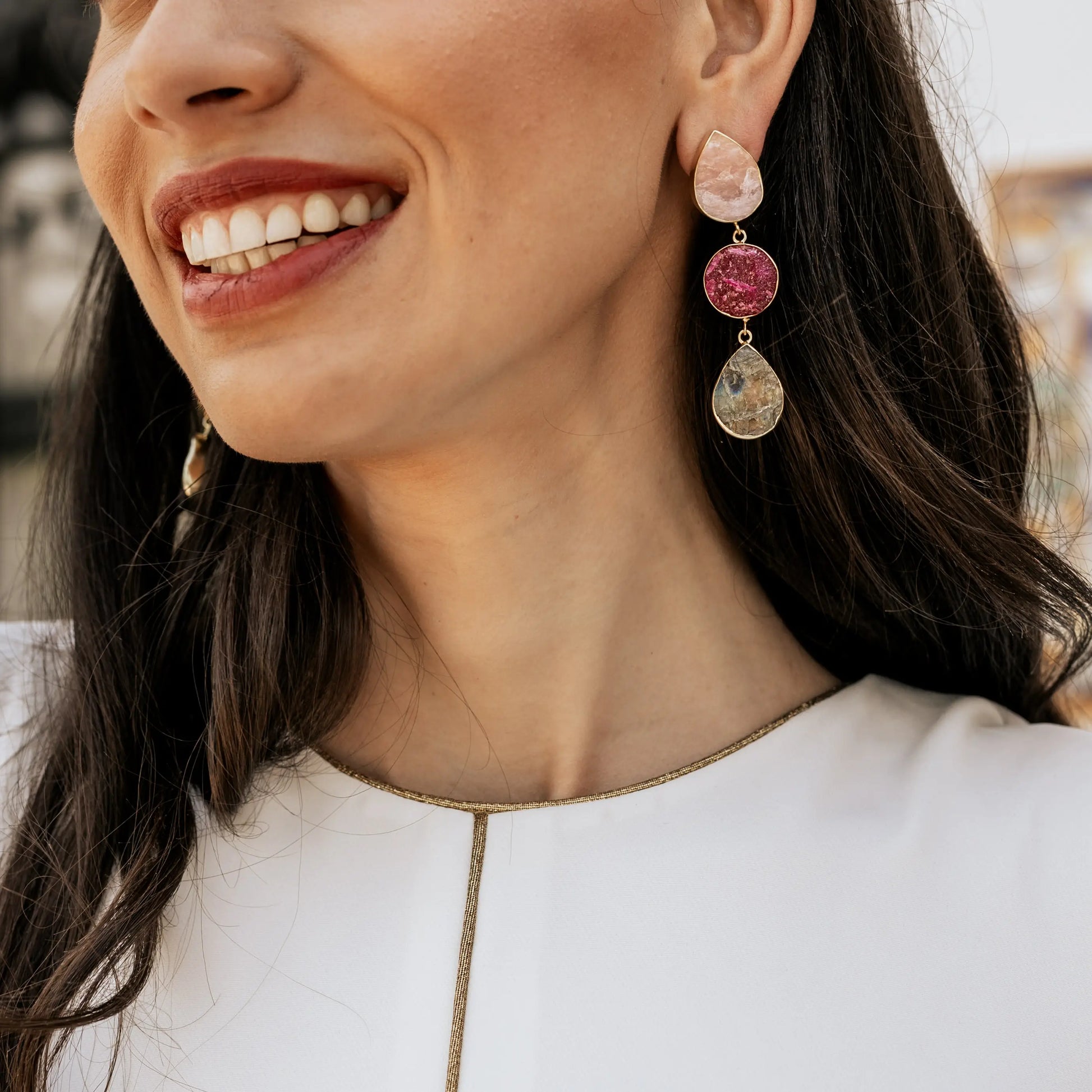 Pendientes Mademoiselle Ed. Limitada Rough Rosa Cuarzo, Rubí y Labradorita
