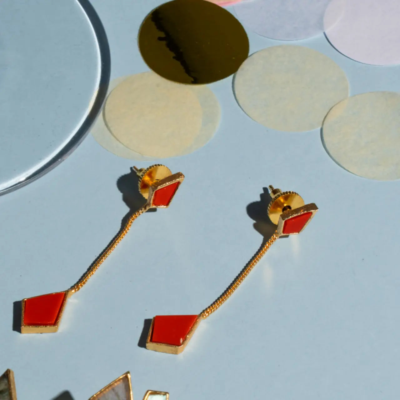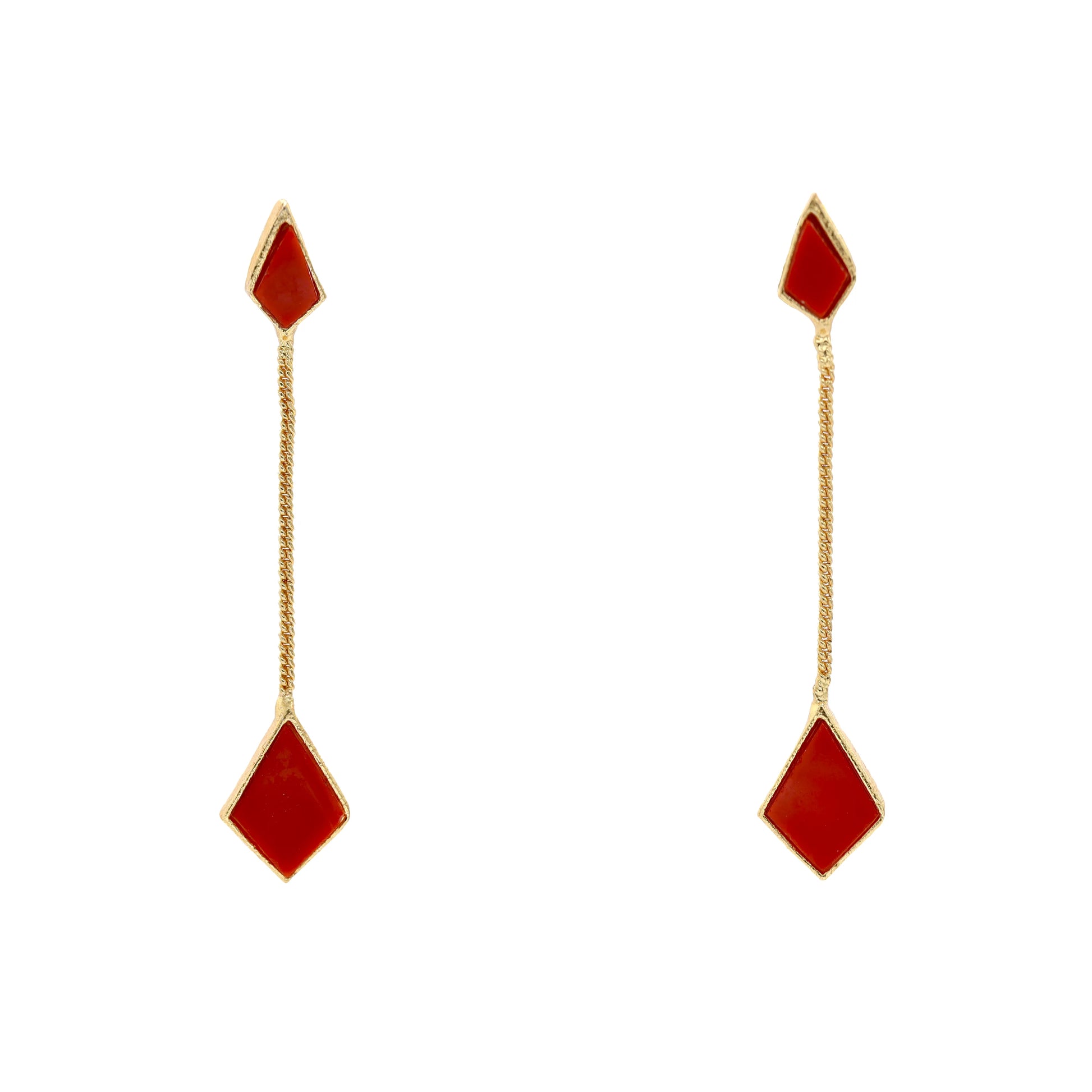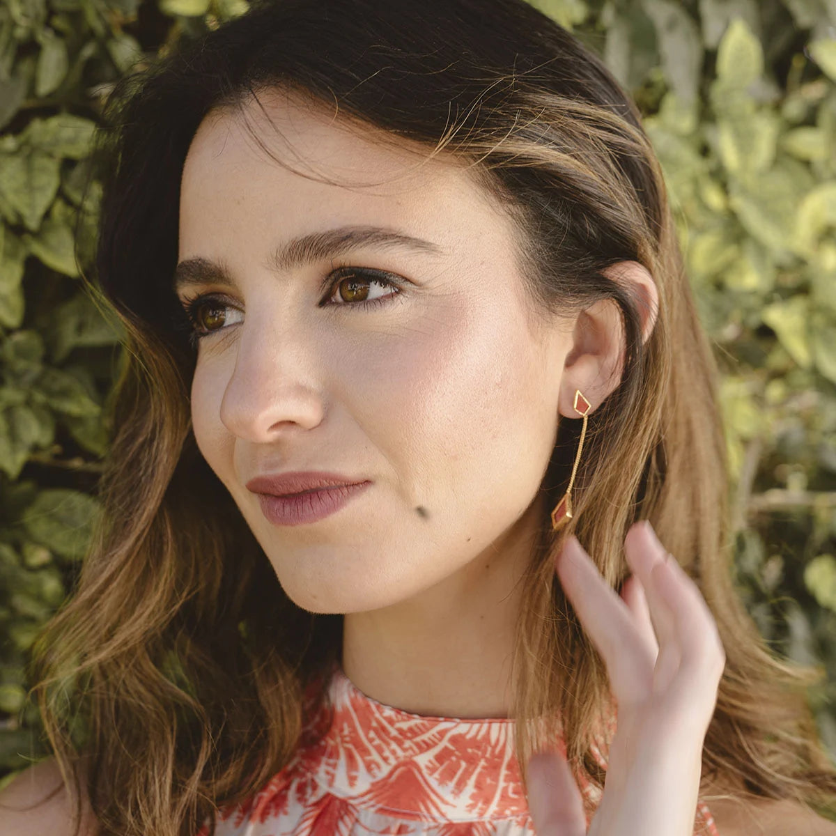 Pendientes formados por dos rombos unidos por una cadena. Cada rombo brinda un toque geométrico y moderno al diseño, mientras que la cadena que los une añade un elemento de conexión y movimiento. Estos pendientes son elegantes y sofisticados, perfectos para complementar cualquier conjunto con su estilo único. La combinación de formas geométricas y la cadena crean un aspecto llamativo y contemporáneo que seguramente captará la atención. Ya sea para una ocasión formal o informal, estos pendientes añadirán un toque de elegancia y originalidad a tu look.