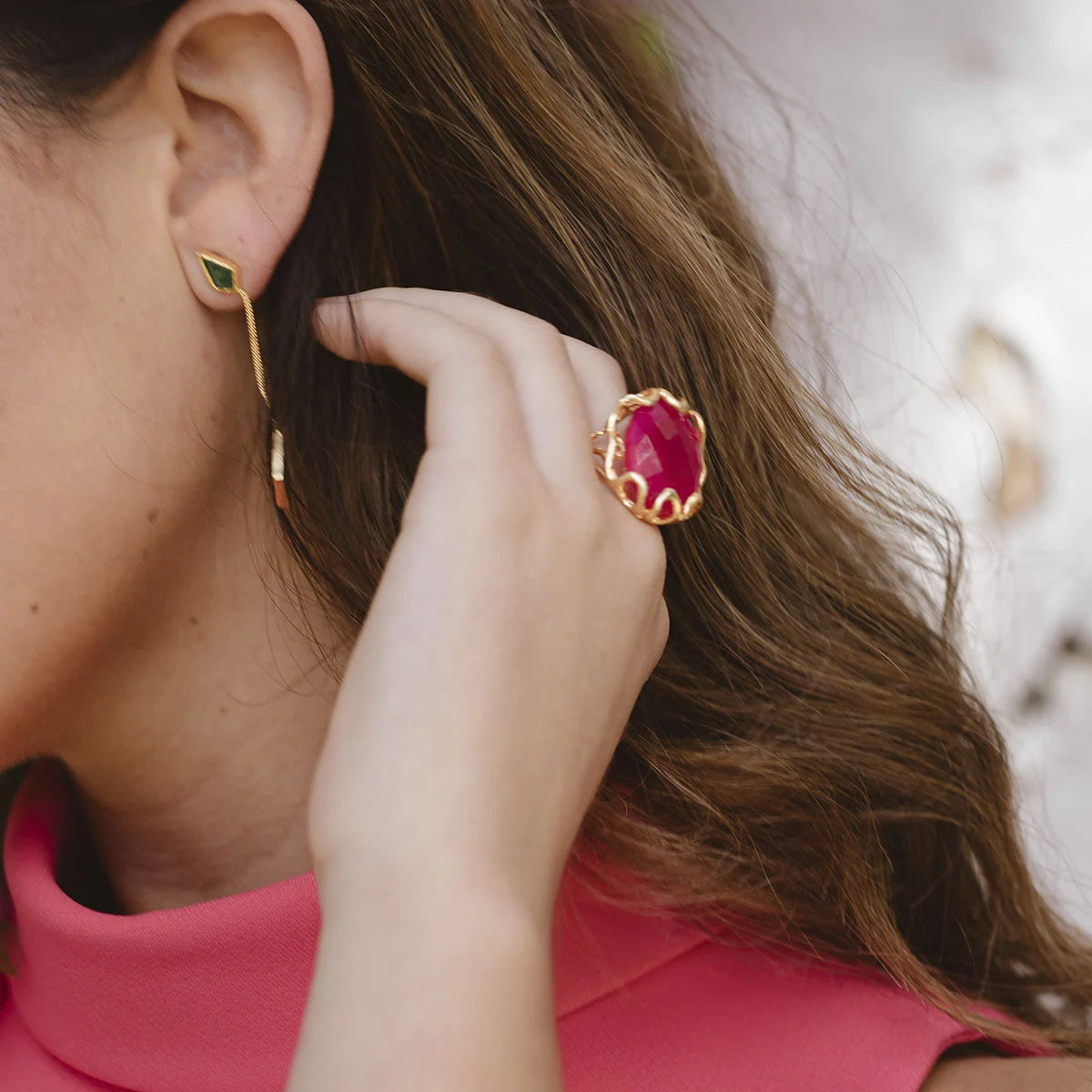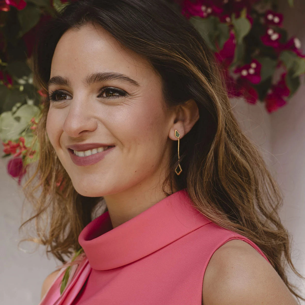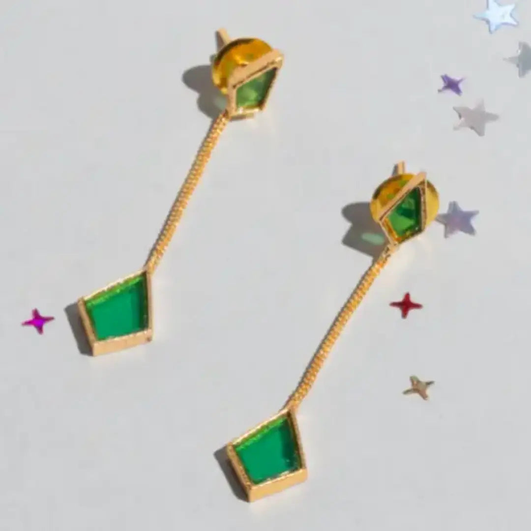 Pendientes formados por dos rombos unidos por una cadena. Cada rombo brinda un toque geométrico y moderno al diseño, mientras que la cadena que los une añade un elemento de conexión y movimiento. Estos pendientes son elegantes y sofisticados, perfectos para complementar cualquier conjunto con su estilo único. La combinación de formas geométricas y la cadena crean un aspecto llamativo y contemporáneo que seguramente captará la atención. Ya sea para una ocasión formal o informal, estos pendientes añadirán un toque de elegancia y originalidad a tu look.
