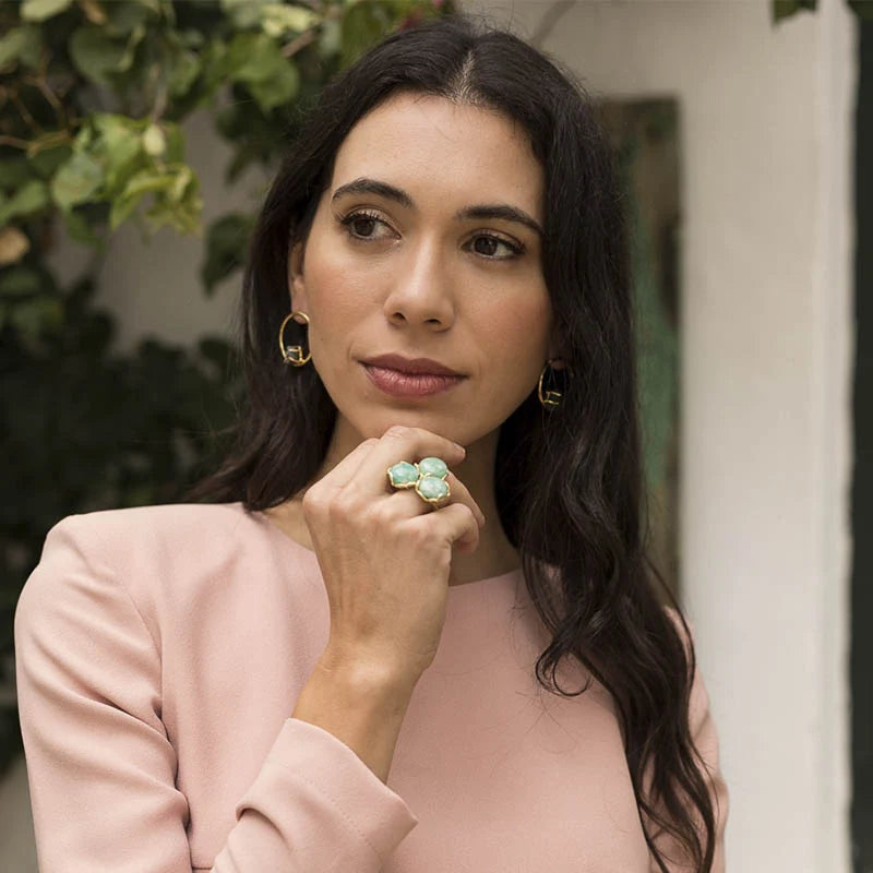 Esta colección es artesanal realizando pieza a pieza. Los colores y forma de la piedra pueden variar al de la foto debido a la naturaleza de la piedra, que hace que cada pieza sea única y exclusiva.