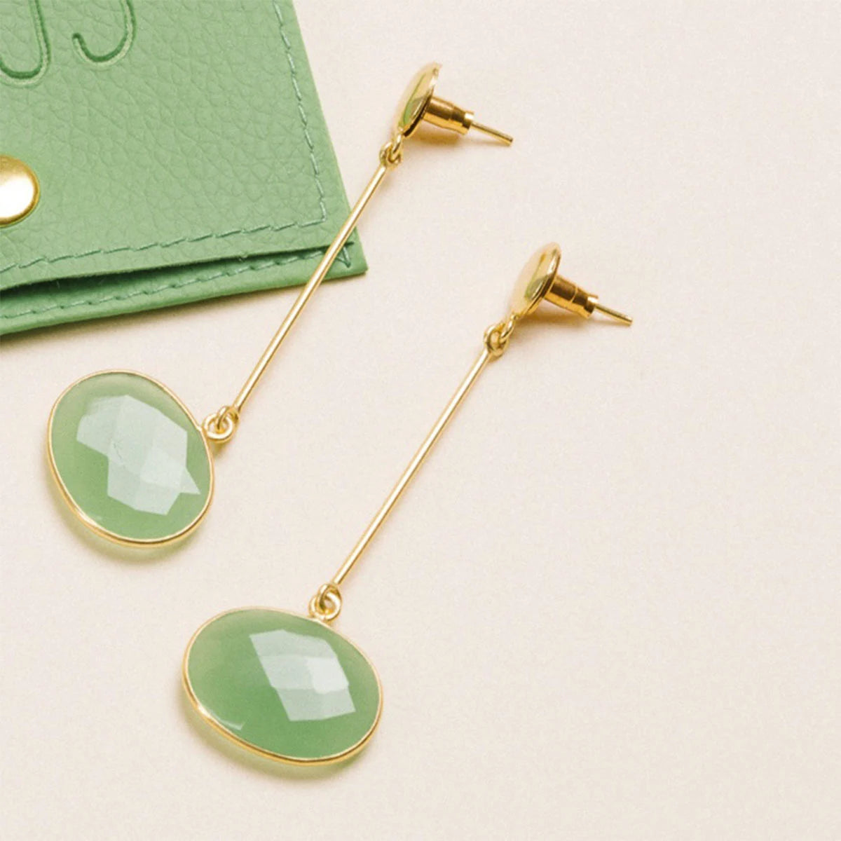 Disfruta de la elegancia sutil con estos sencillos pendientes. Un palo vertical sostiene delicadamente una piedra, creando un diseño minimalista que añade un toque ideal a tu estilo en cualquier ocasión.