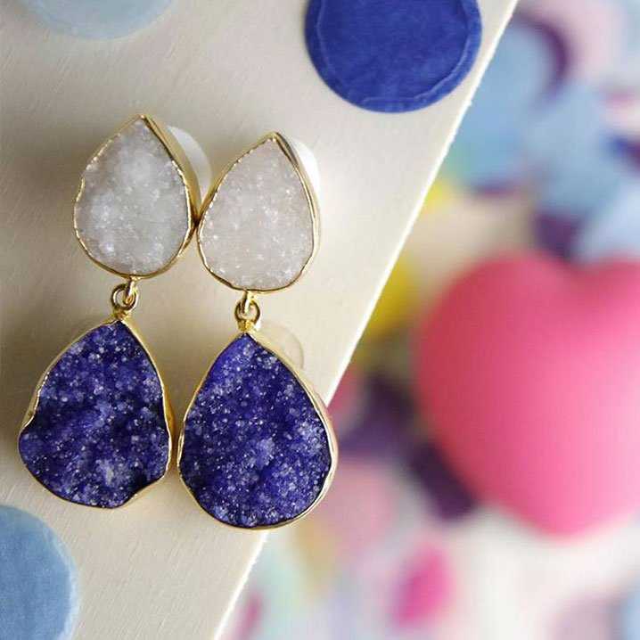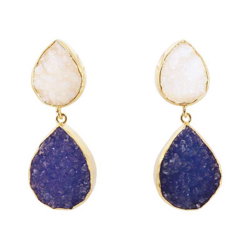 Pendientes artesanales que fusionan la destreza manual con la belleza natural. Dos piedras en forma de gota se juntan, creando una obra única que refleja la artesanía excepcional y añade un toque de encanto a tu estilo.