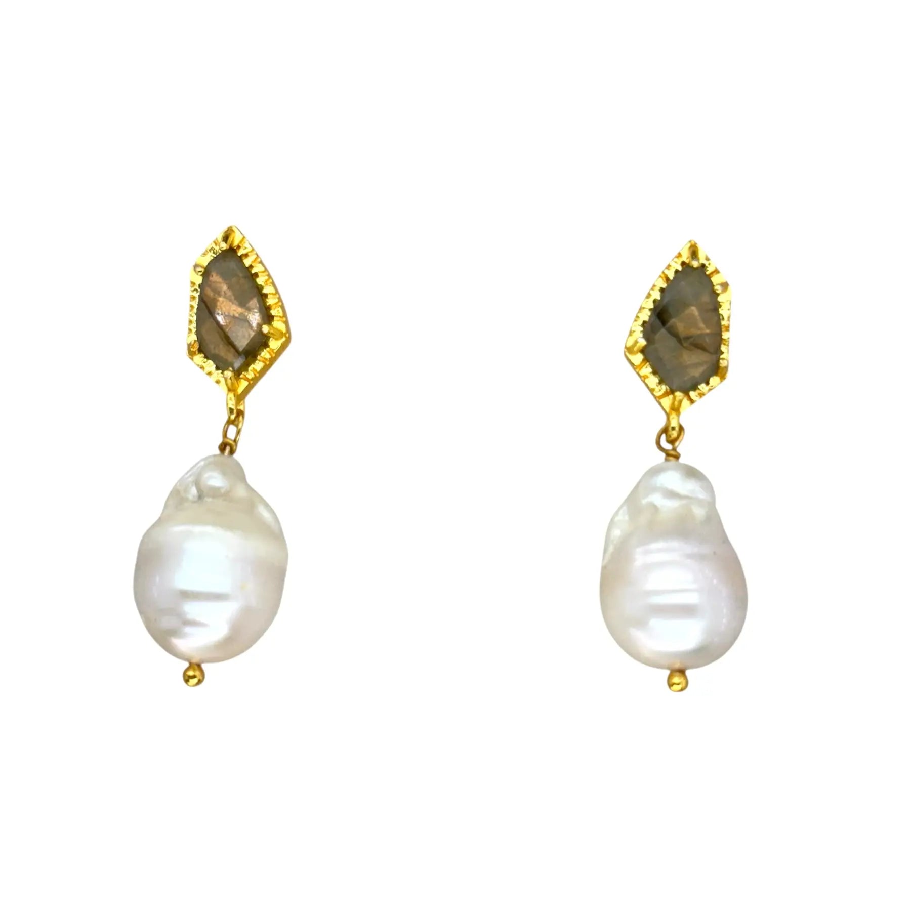 Estos pendientes combinan una piedra central en forma de gota con un detalle colgante que aporta movimiento y elegancia. Su diseño mezcla formas sofisticadas y un toque artístico que los hace perfectos para realzar cualquier look, desde atuendos clásicos hasta los más contemporáneos. Una pieza para destacar con sutileza y distinción.