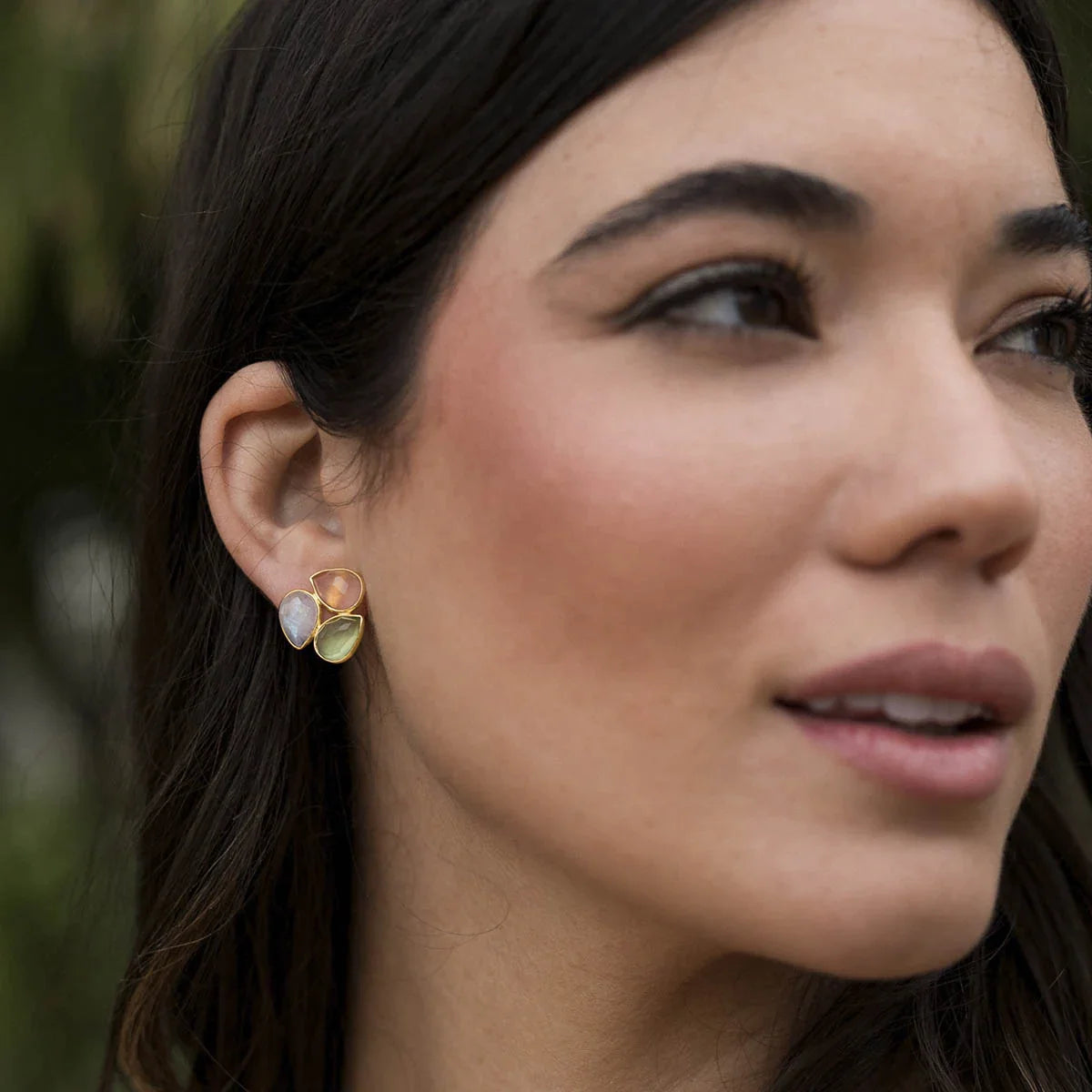 Simplicidad y elegancia se unen en estos pendientes con tres piedras en forma de gota, formando una composición armoniosa. Su diseño versátil y encantador agrega un toque de sofisticación a cualquier look, siendo la elección perfecta para destacar en cualquier ocasión.