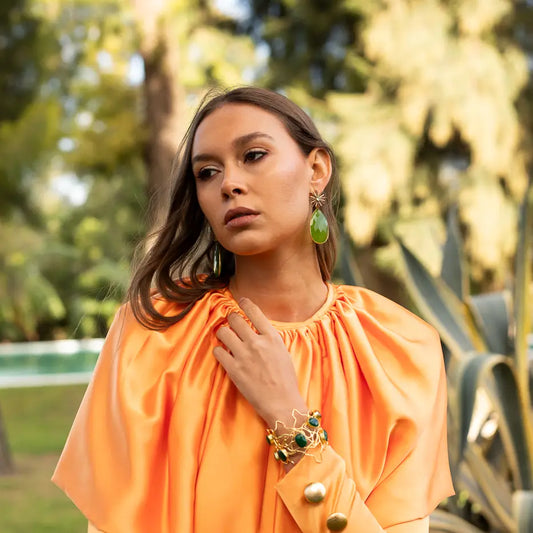 Set Matrix Pendientes Leaves y Eye Verdes y Buganvilla