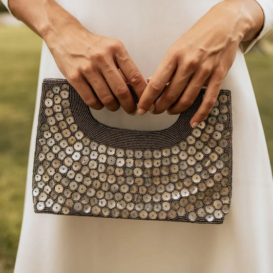 Bolso Cofre Mosaico Greece Plata Nácar - Tara Baño amarillento