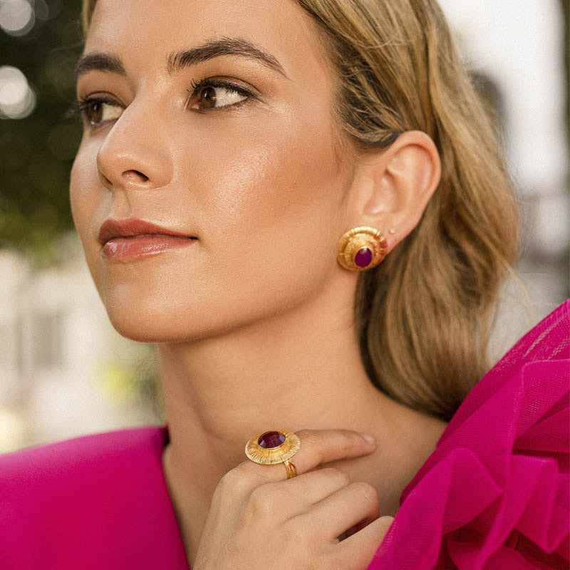 Latón bañado en oro con piedra