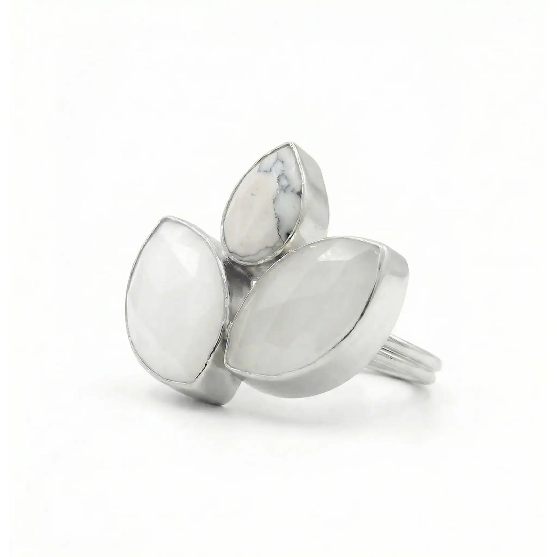 Anillo Grayas Ed. Limitada Plata Piedra Pulida Lunar, Blanco y Howlite