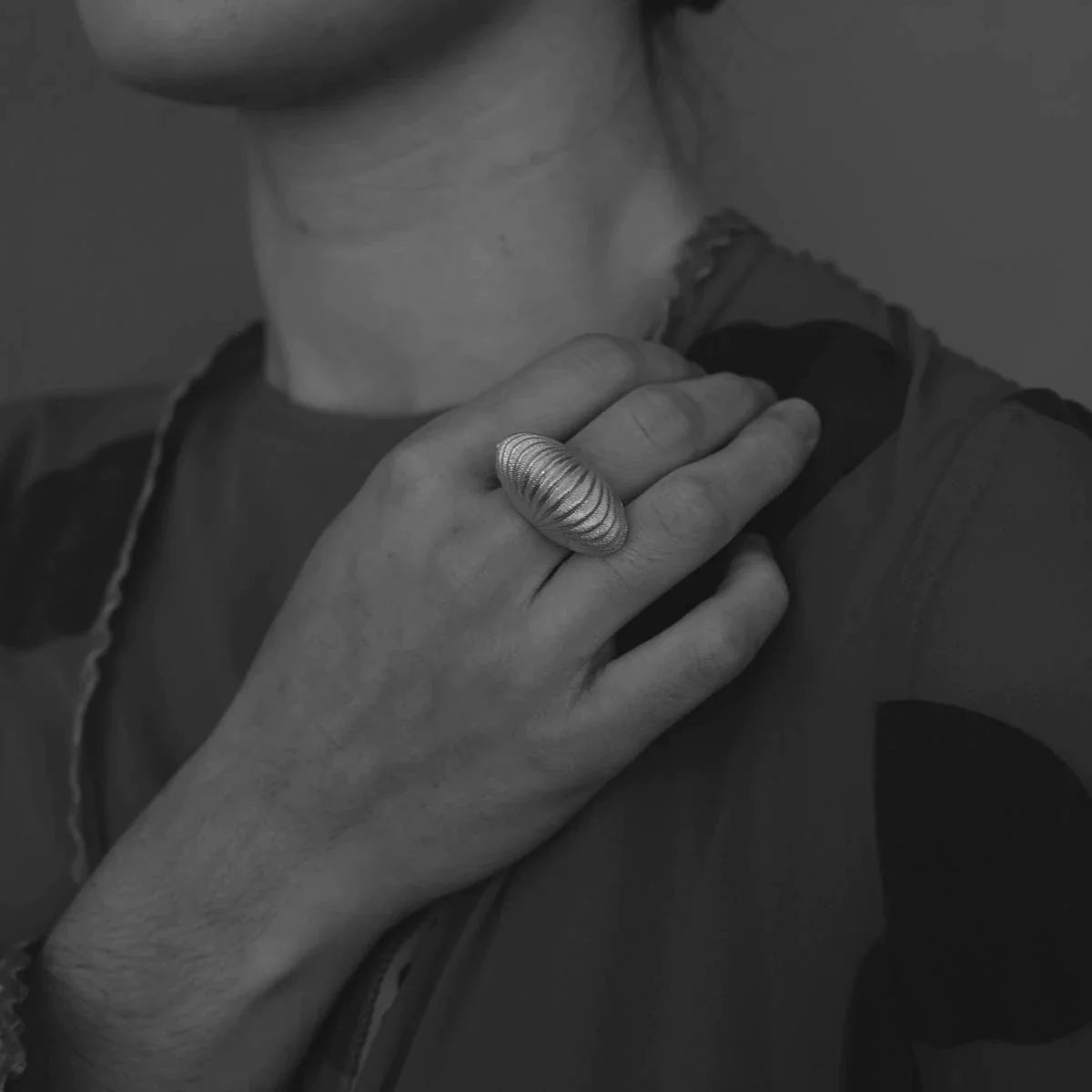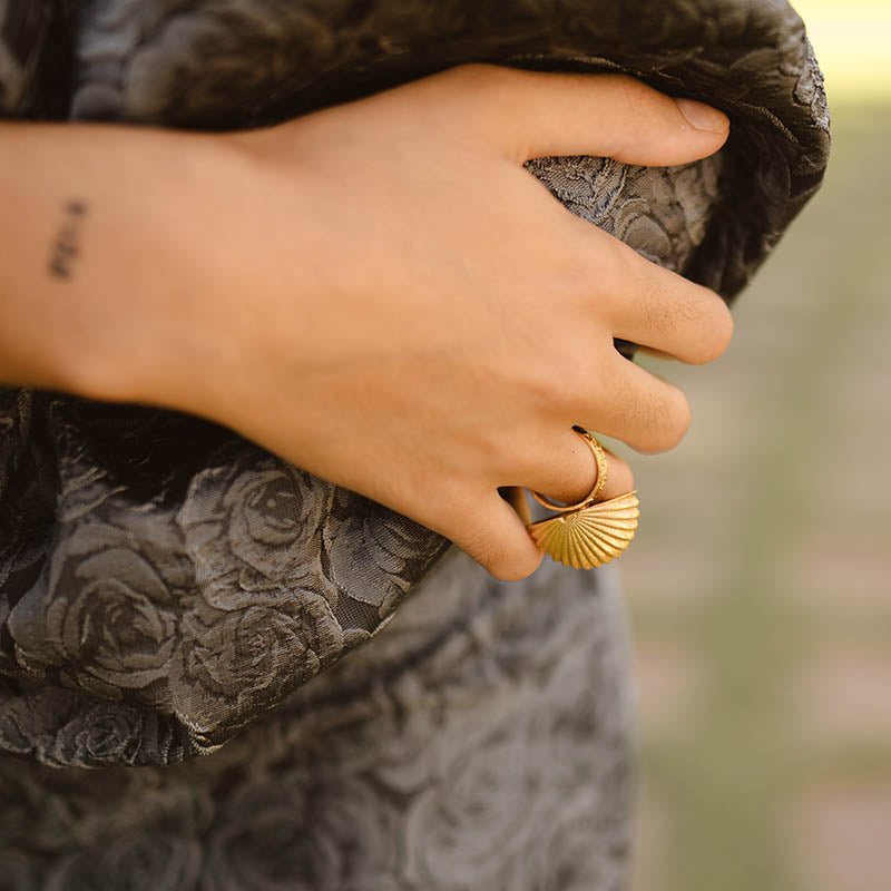 Anillo con forma de concha. Este anillo es una declaración de estilo contemporáneo.