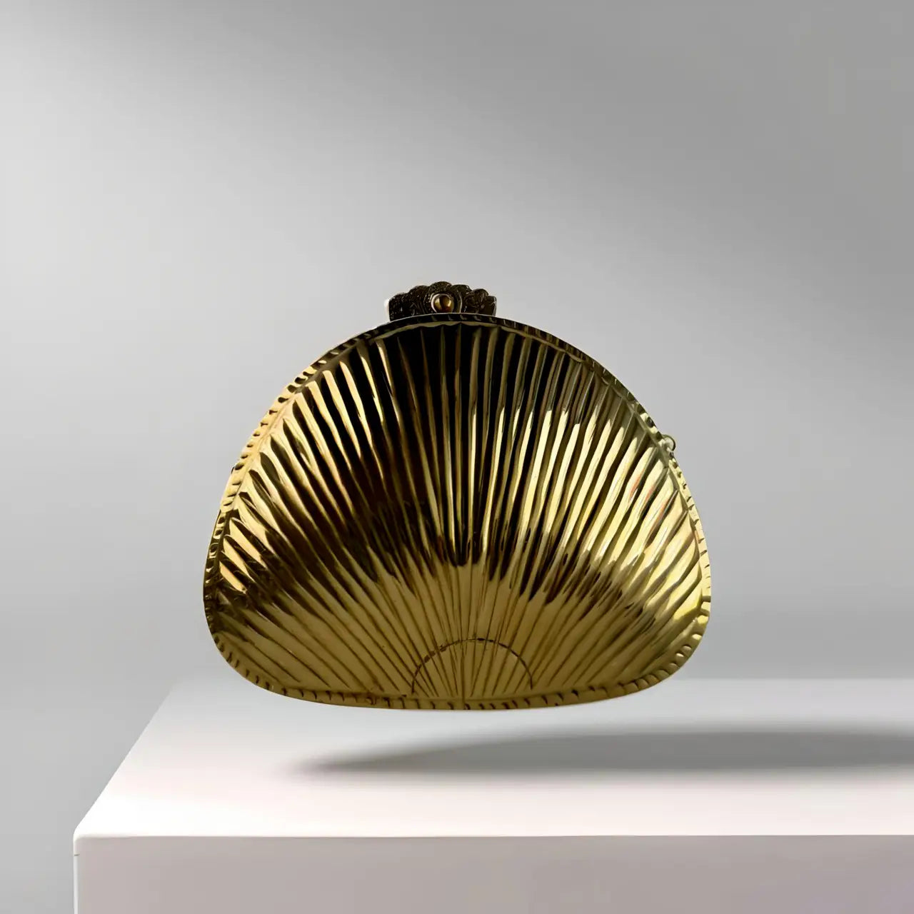 Sumérgete en la elegancia marina con él. Inspirado en la belleza natural de las conchas marinas, este bolso combina un diseño sofisticado con un toque de lujo dorado, convirtiéndose en el accesorio perfecto para cualquier ocasión especial.