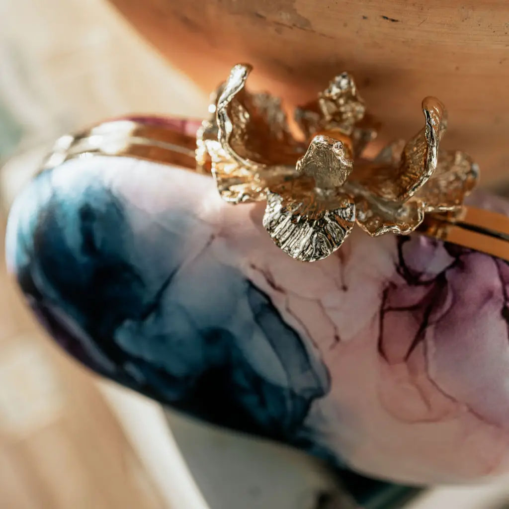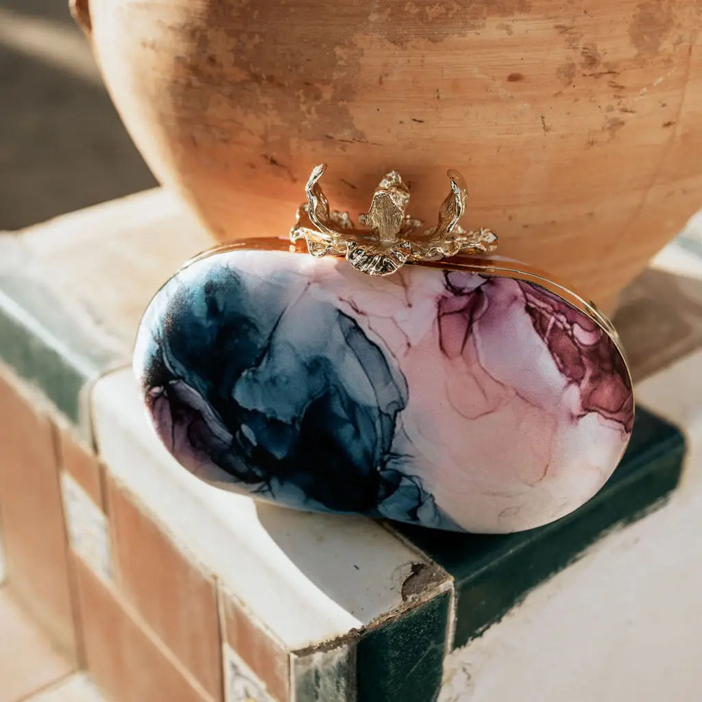 Bolso Ovalado Flor Garra Print Art Azules y Rosas