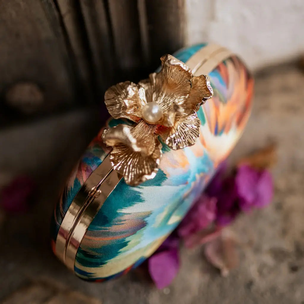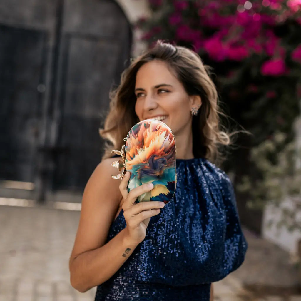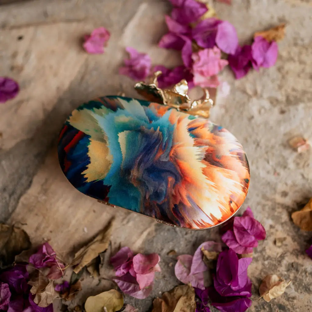 Bolso Ovalado Flor Garra Print Art Explosión Multicolor