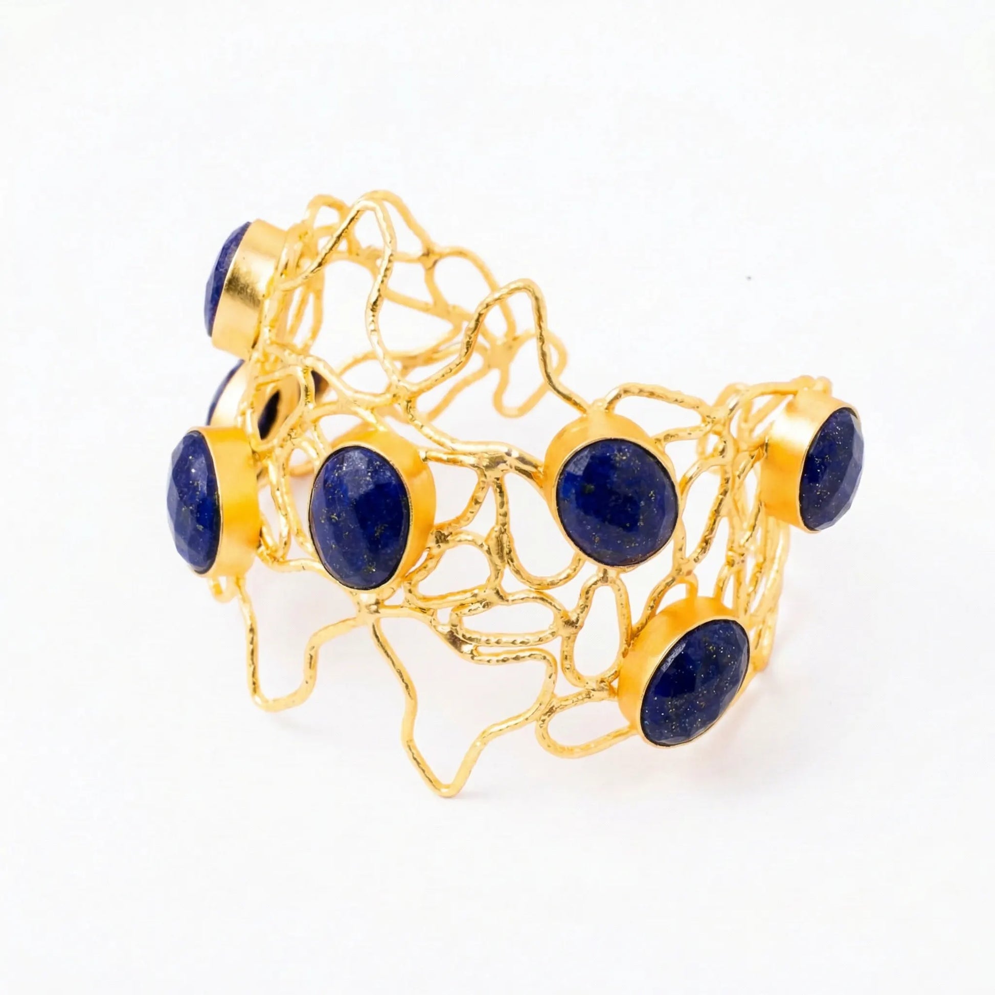 Brazalete formado por diferentes líneas que se entrecruzan y sostienen varias piedras. Un diseño único y muy vistoso que aporta originalidad y combina fácilmente con distintos looks.