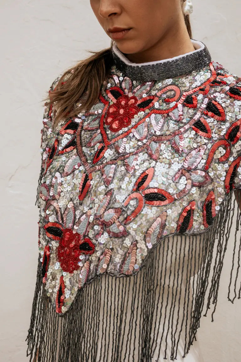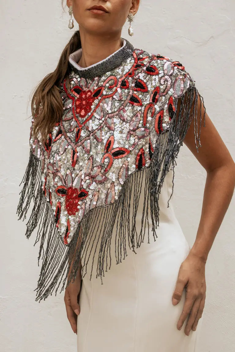 Capa Joya Elvy Gris perla, Iridiscente, Rosa y Rojo