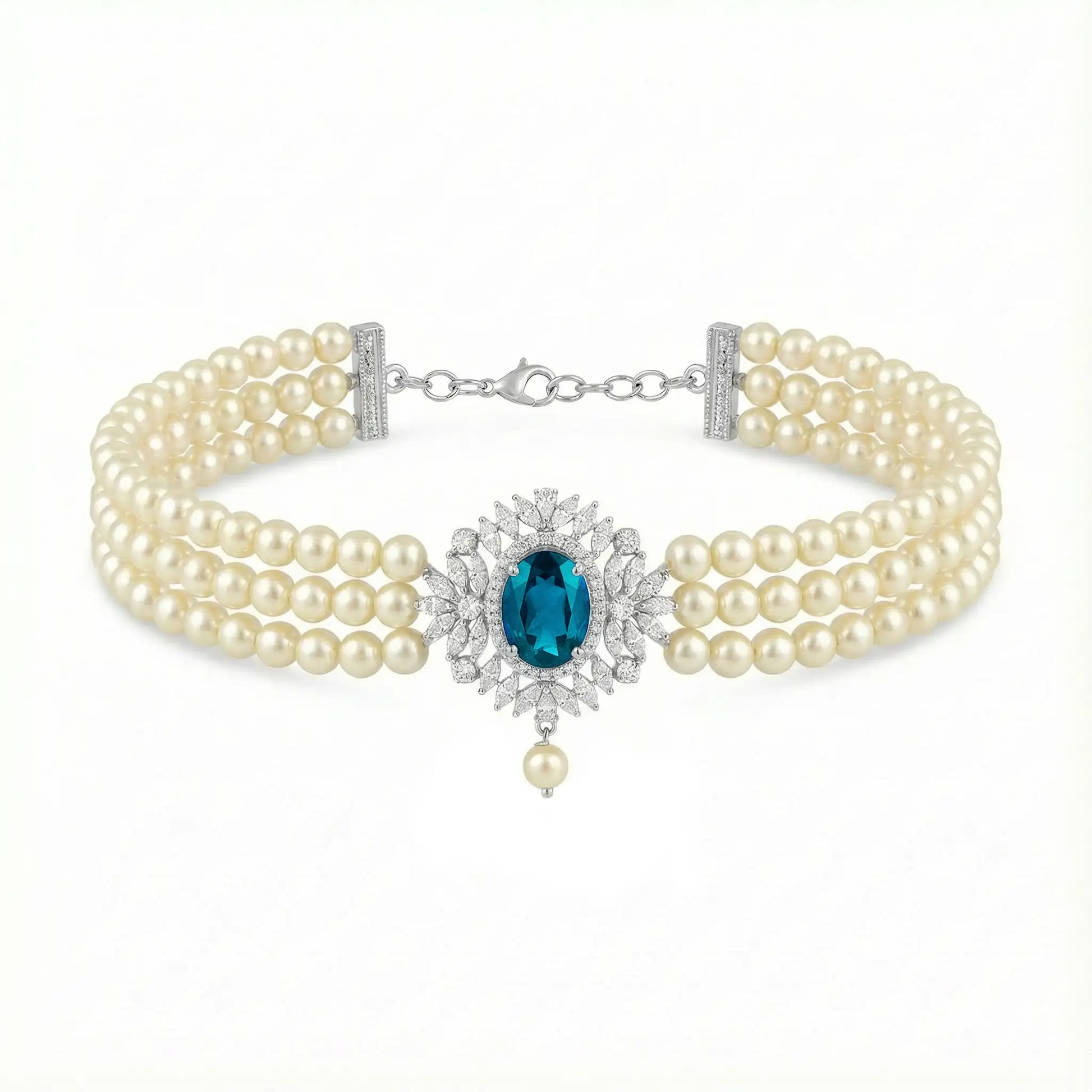 Este choker es ideal para ocasiones especiales, donde deseas destacar con un estilo refinado y moderno. Las hileras de piedras añaden un brillo cautivador, mientras que la pieza central ovalada actúa como un punto focal de elegancia y distinción. Es el accesorio perfecto.