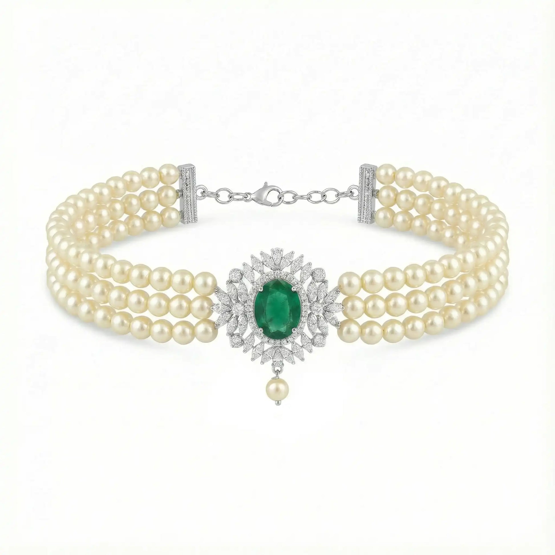 Choker Cella Plata Verde y Perlas