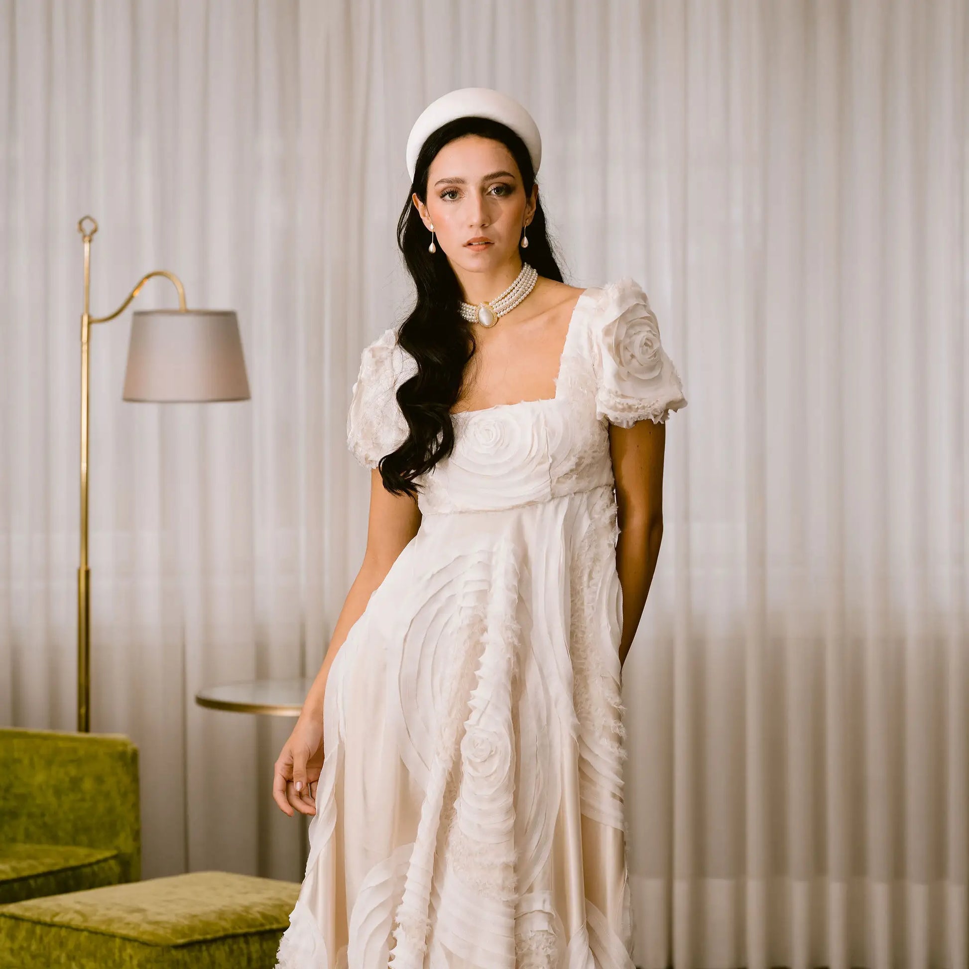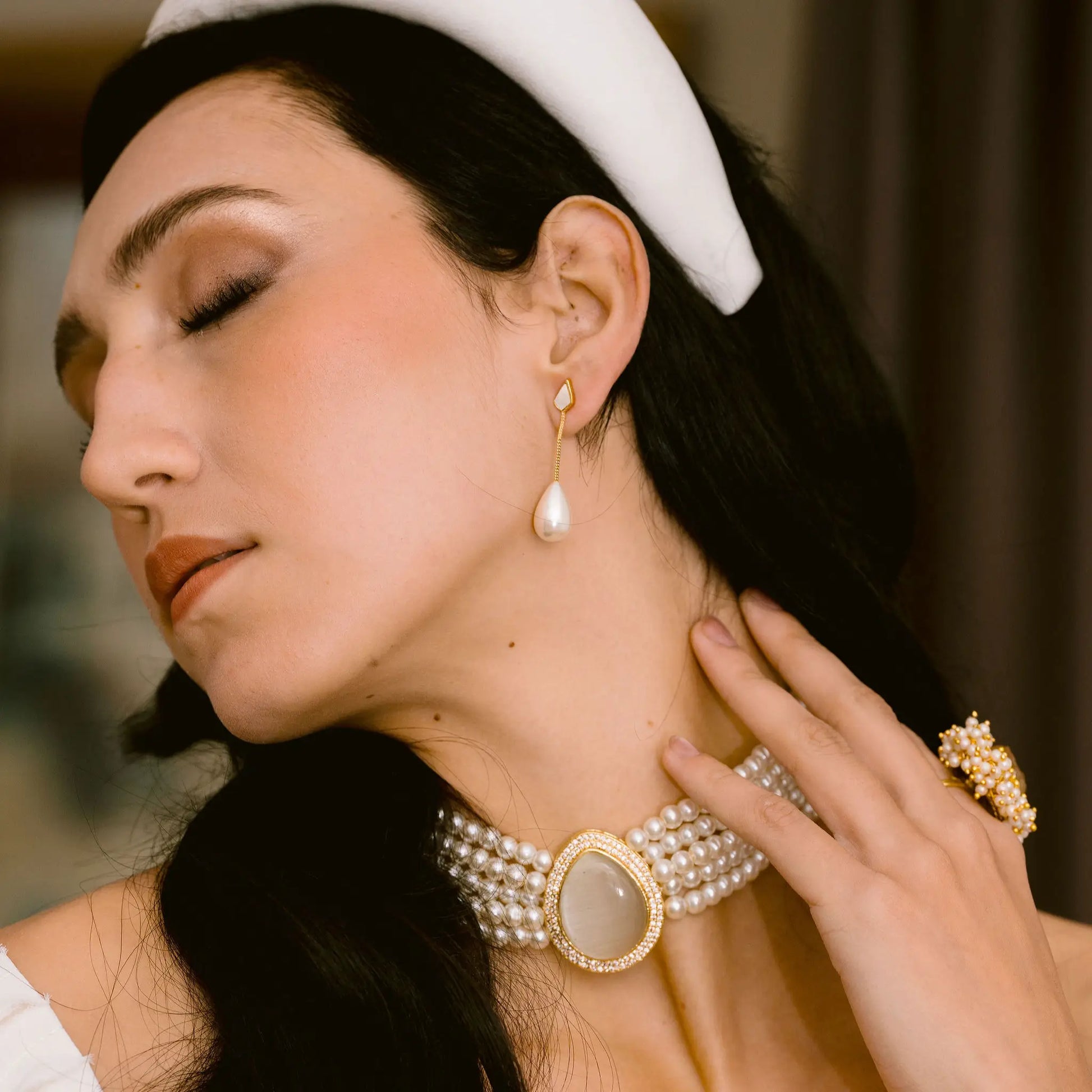 Un diseño que evoca la delicadeza de otras épocas con un guiño actual. El choker Isolde está compuesto por hileras de perlas redondeadas que se ajustan al cuello con armonía y sutileza. Su centro destaca con una pieza lágrima de acabado suave y envolvente, enmarcada por un contorno de pequeños destellos que aportan luz y elegancia.