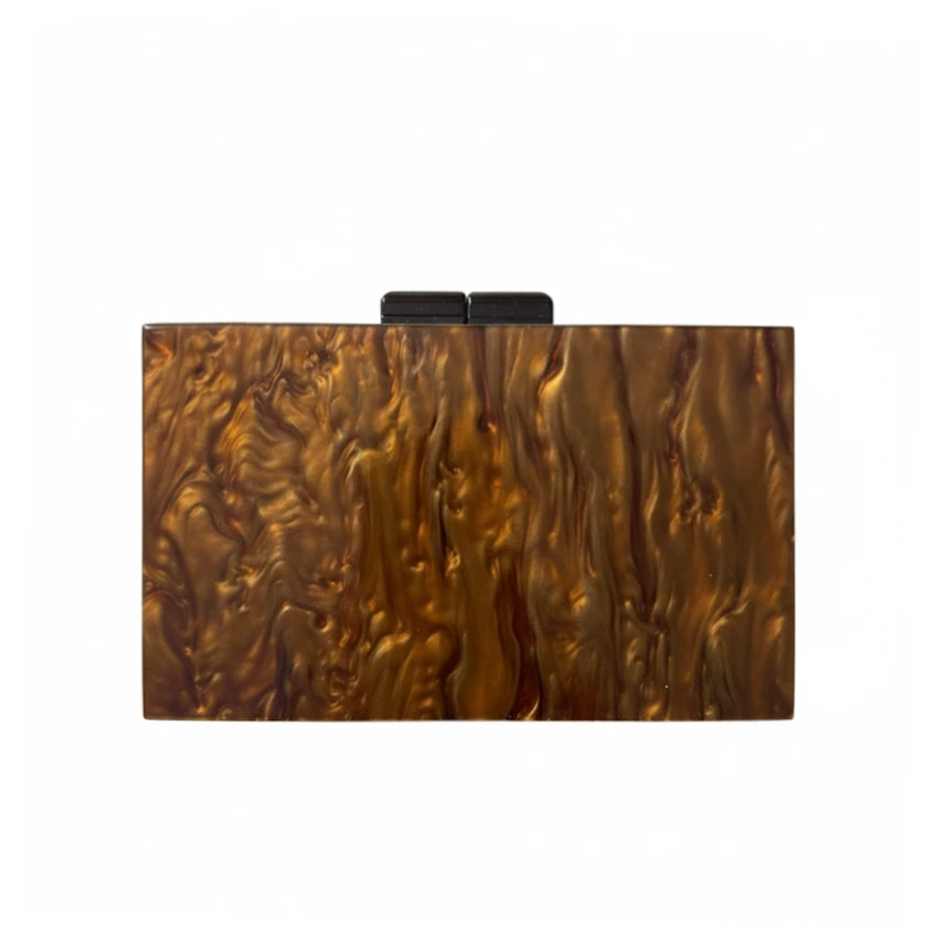 Bolso de mano en acrílico de efecto mármol en forma de olas. Sin bordes metalizados.