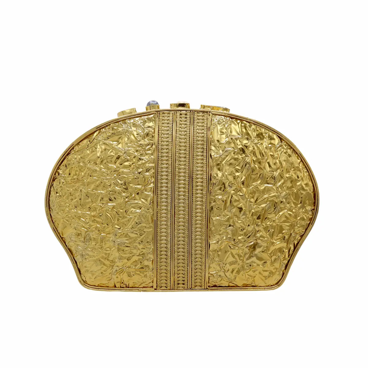 El Clutch Deluxe Ecos de Piedras Nácar es sinónimo de lujo y minimalismo. Diseñado sobre una base de nácar iridiscente, este bolso incluye detalles dorados en relieve que le aportan un toque elegante y sofisticado. Ideal para ocasiones formales, su diseño compacto y exclusivo lo convierte en un accesorio imprescindible para eventos nocturnos. Viene con una cadena dorada desmontable que añade practicidad sin perder la esencia de glamour que caracteriza esta pieza única.