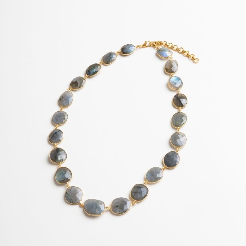 Este elegante y atemporal collar presenta piedras de formas irregulares cuidadosamente seleccionadas, añadiendo un toque de encanto natural y artístico.