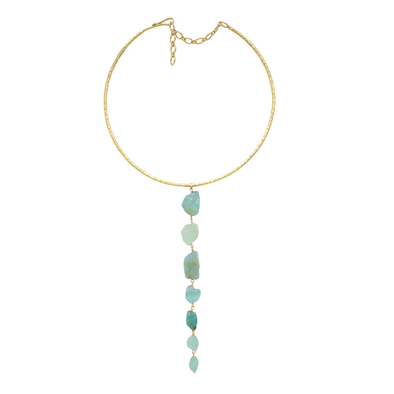 Original y elegante collar con varias piedras móviles que descienden desde la pieza central.