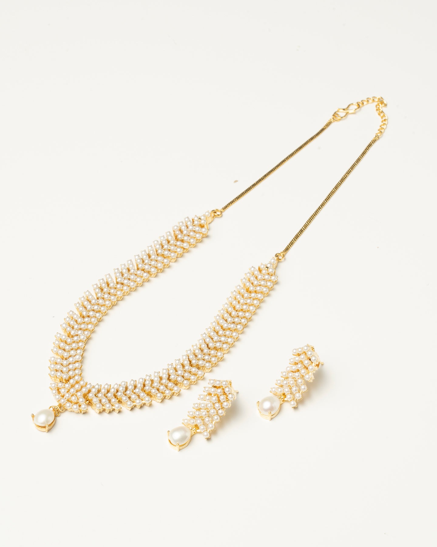 Este conjunto de collar y pendientes destaca por su diseño cuidado y su gran capacidad para reflejar la luz, creando un efecto sofisticado y equilibrado. Ambas piezas se complementan entre sí para aportar armonía y realzar el rostro y el escote con un brillo delicado pero protagonista.