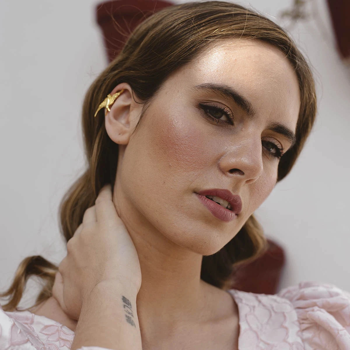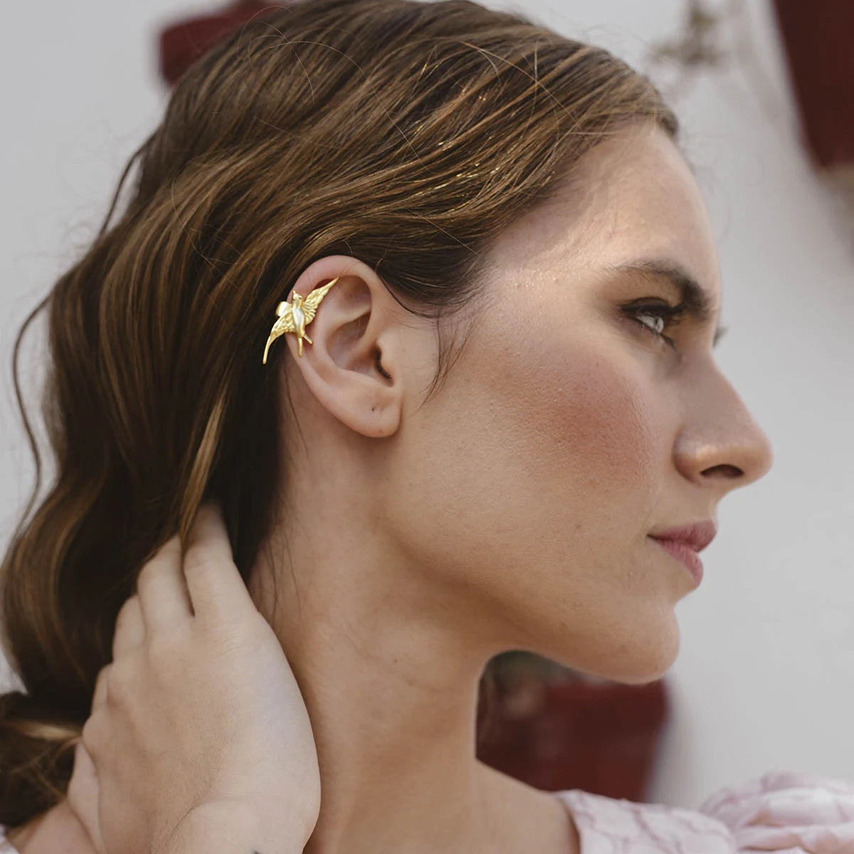 Uno clásico, otro earcuff… juntos crean una combinación dorada que atrapa todas las miradas.