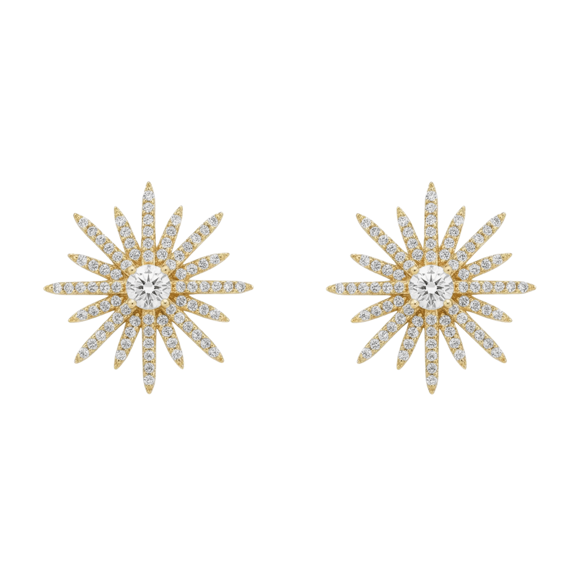 Pendientes en forma de estrella de múltiples puntas, decorados con circonitas engastadas que rodean una circonita central más grande. Su diseño captura la esencia del firmamento y refleja la belleza de lo celestial en cada destello. Podrás crear el diseño Estrella Polar o Estrella Polaris para Matrix