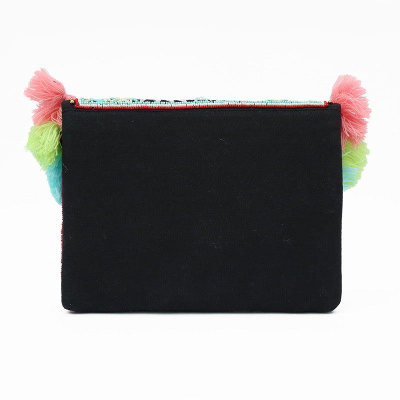 Confeccionado artesanalmente con cuentas y lentejuelas, Anad Claro es un bolso de la marca Occeanis.