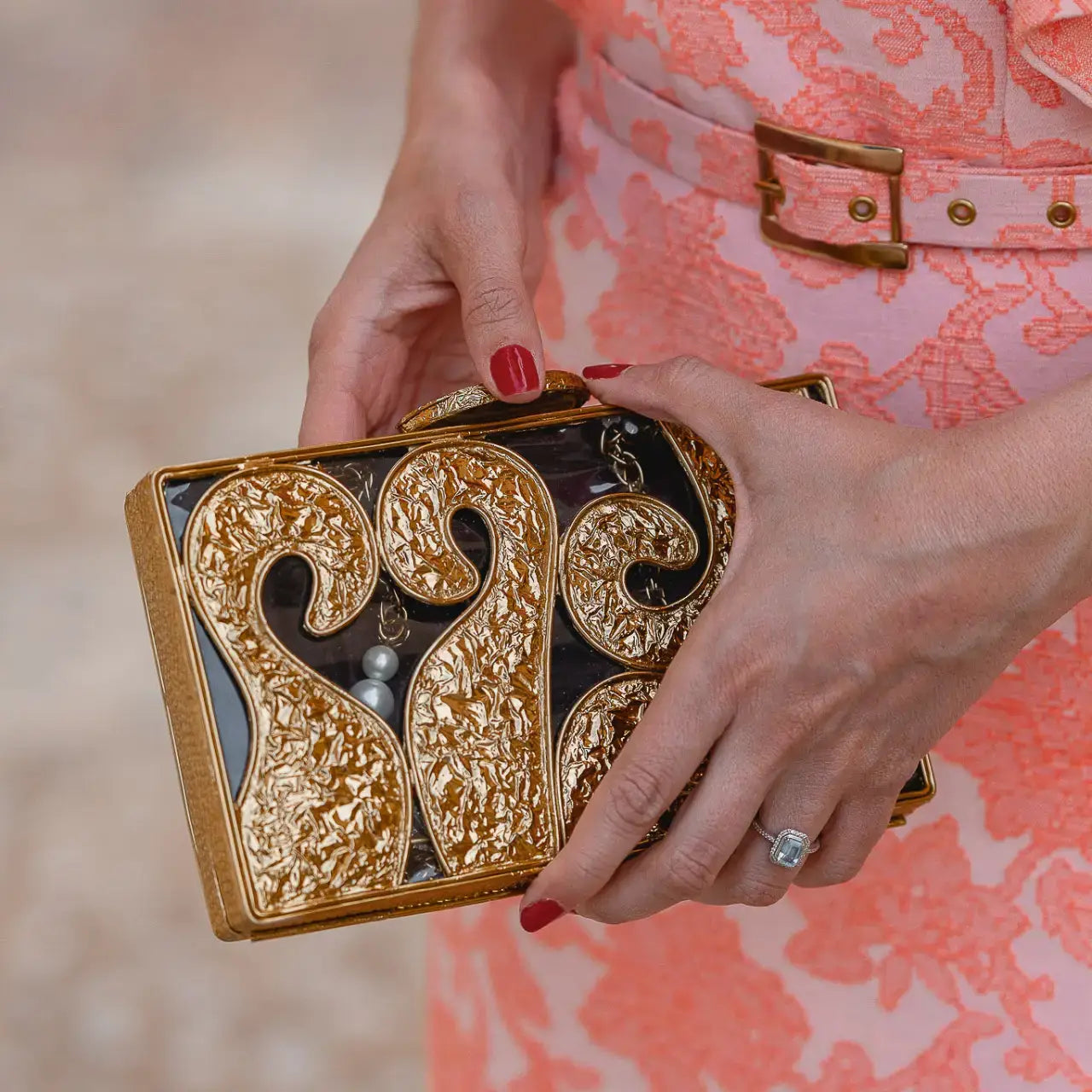 Llamas sobre fondo de color a través de una fina capa. El bolso que revolucionará tu armario. Korga está repleto de magia y detalles. Este complemento vuelve a conseguir esa pasión y fuerza que caracteriza a los bolsos de Occeanis. Pura espiritualidad que emana desde su foco para poder dejar protagonismo al resto de manera elegante y especial. Perfecto para eventos de día o de noche.