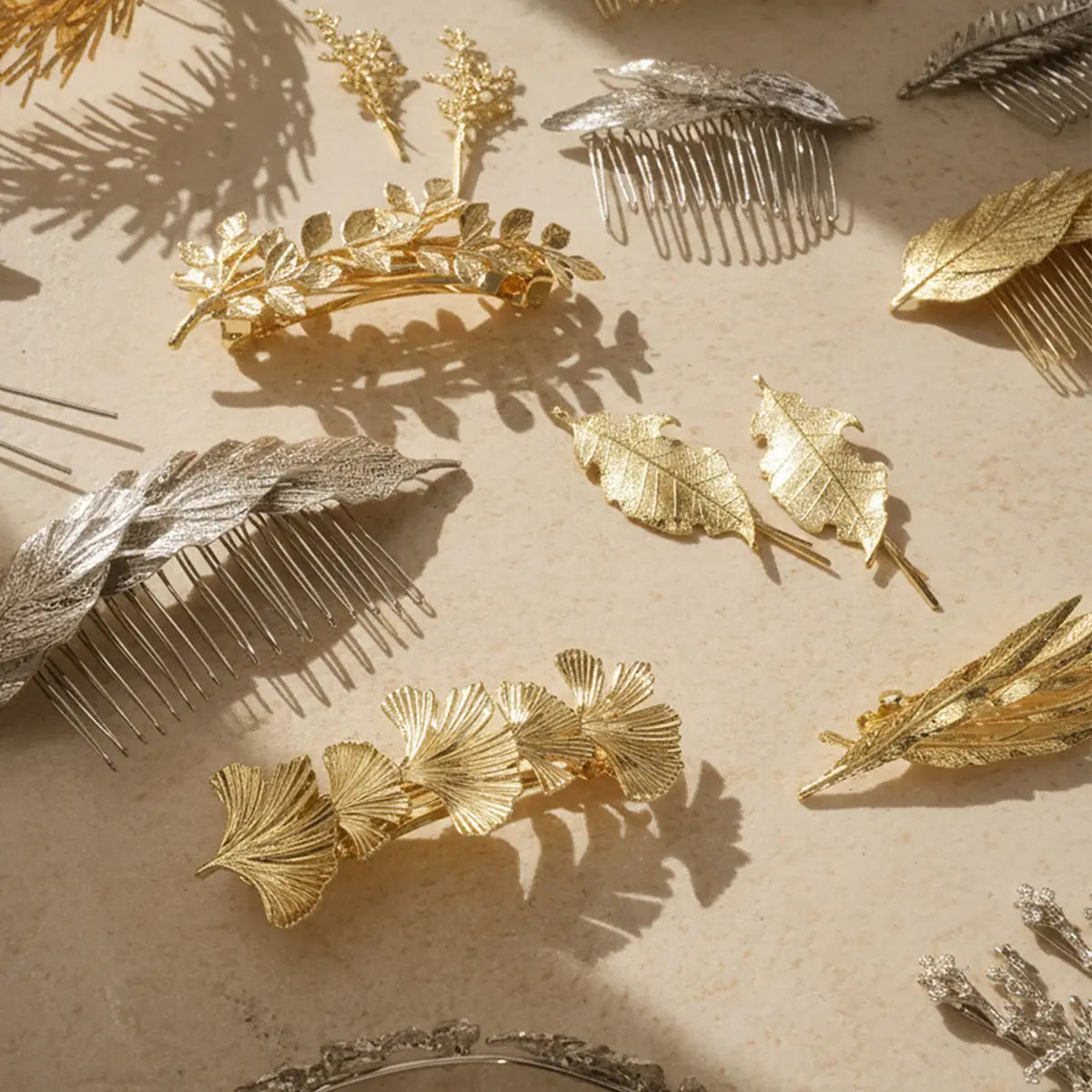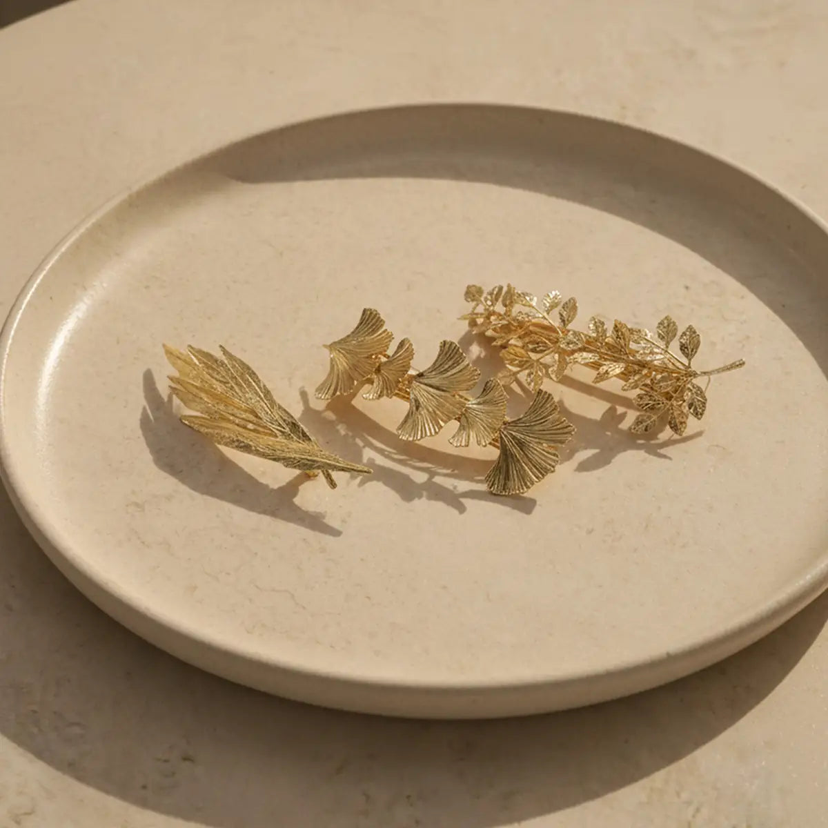 Añade un toque de naturaleza y elegancia a tu peinado con este pasador inspirado en el ginkgo biloba, un símbolo de resiliencia y armonía. Con cinco hojas delicadamente superpuestas, cada detalle está pensado para aportar movimiento, textura y sofisticación a cualquier recogido o semi-recogido.