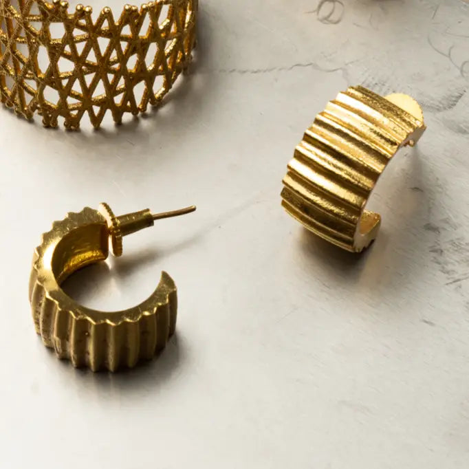 Estos aros anchos destacan por su imponente diseño y su textura de líneas horizontales que los hace únicos y sofisticados. Cada línea aporta profundidad y carácter, creando un efecto visual que eleva cualquier look. Perfectos para quienes buscan un pendiente moderno y atrevido, estos aros son ideales tanto para ocasiones especiales como para darle un toque elegante a tu día a día. Su diseño atemporal asegura que sean una pieza imprescindible en cualquier colección.
