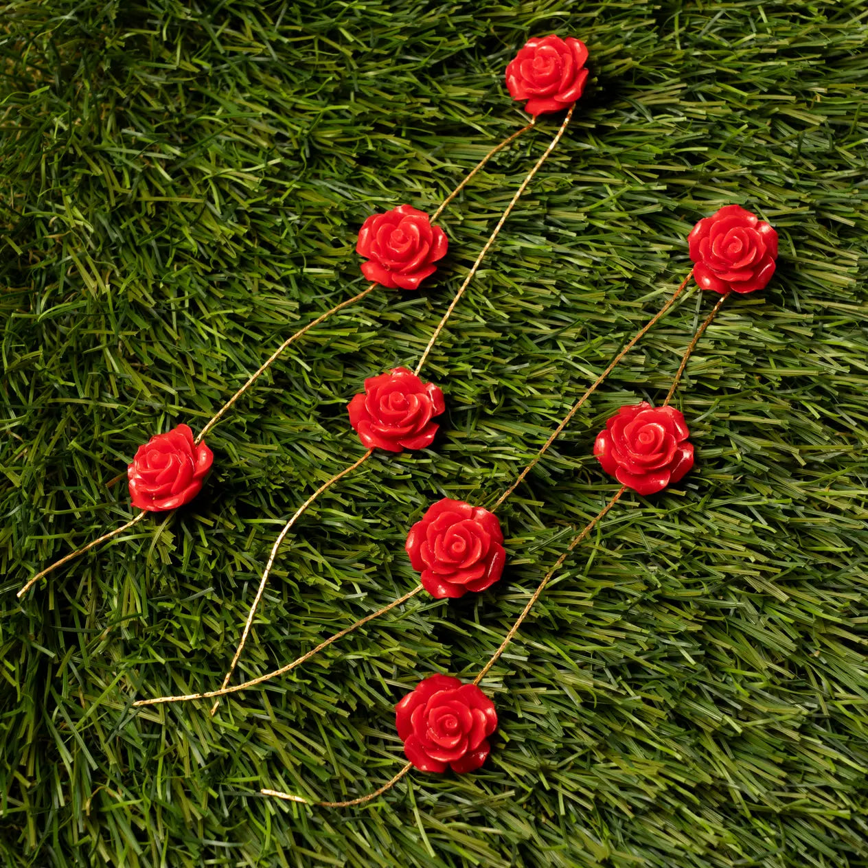 Estos pendientes destacan por su diseño floral único. Una rosa en relieve se adorna con dos cadenas delicadas: una lleva una rosa en el centro, mientras que la otra presenta dos rosas. Este juego de flores y cadenas aporta un toque elegante y femenino, creando un balance perfecto entre suavidad y sofisticación. Perfectos para añadir un toque de estilo y frescura a cualquier look.
