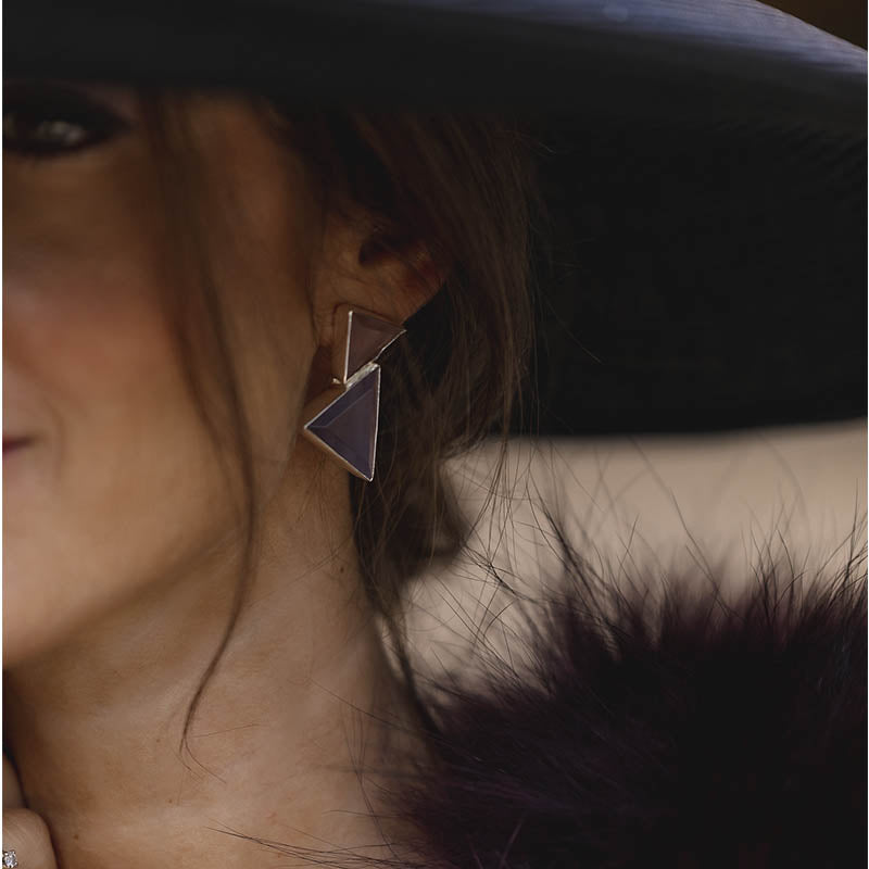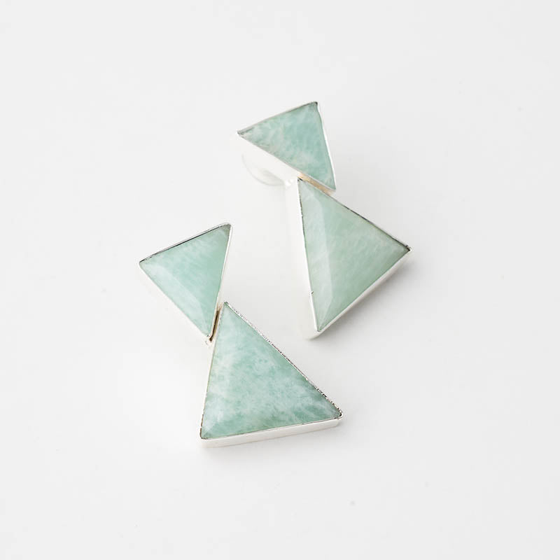 Pendientes con dos piedras en forma de triángulos desfasadas.
