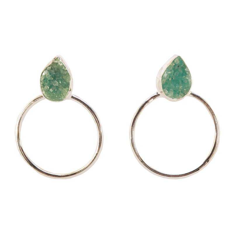 Originales pendientes de piedra en forma de lágrima con un giro innovador en los clásicos aros, ahora colocados de manera frontal. El resultado es una pieza excelente, delicada y elegante, que reinventa la esencia clásica con un toque moderno y distintivo.