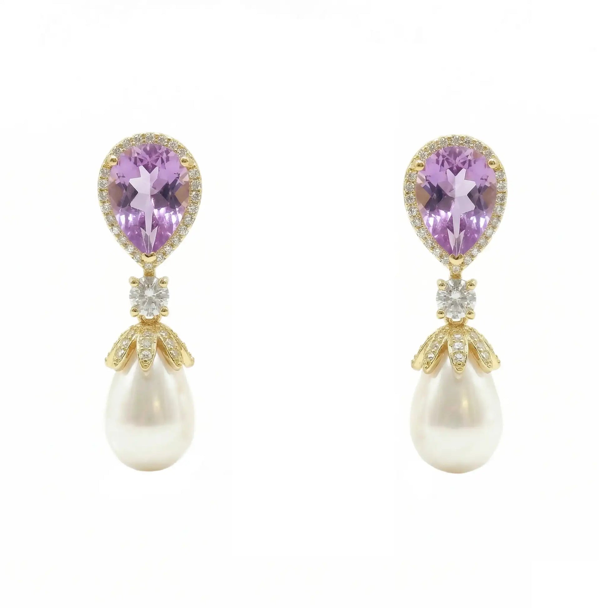 Estos pendientes destacan por su elegancia y sofisticación. Formados por dos piedras en forma de gota, dispuestas una debajo de la otra, crean un efecto visual deslumbrante y favorecedor. La disposición en cascada de las piedras alarga y estiliza la línea del cuello, capturando la luz de manera espectacular. Perfectos para eventos formales y ocasiones especiales, aportan un toque de sofisticación a cualquier atuendo.