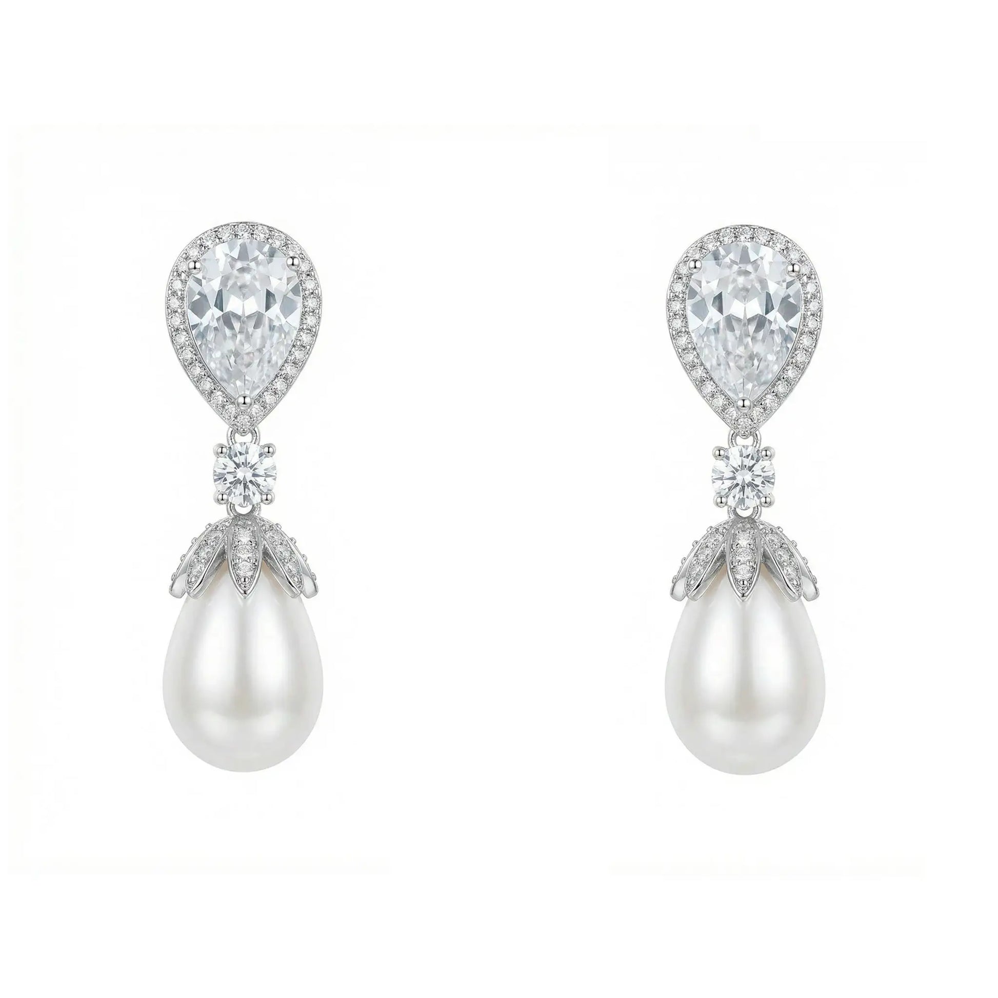 Estos pendientes destacan por su elegancia y sofisticación. Formados por dos piedras en forma de gota, dispuestas una debajo de la otra, crean un efecto visual deslumbrante y favorecedor. La disposición en cascada de las piedras alarga y estiliza la línea del cuello, capturando la luz de manera espectacular. Perfectos para eventos formales y ocasiones especiales, aportan un toque de sofisticación a cualquier atuendo.
