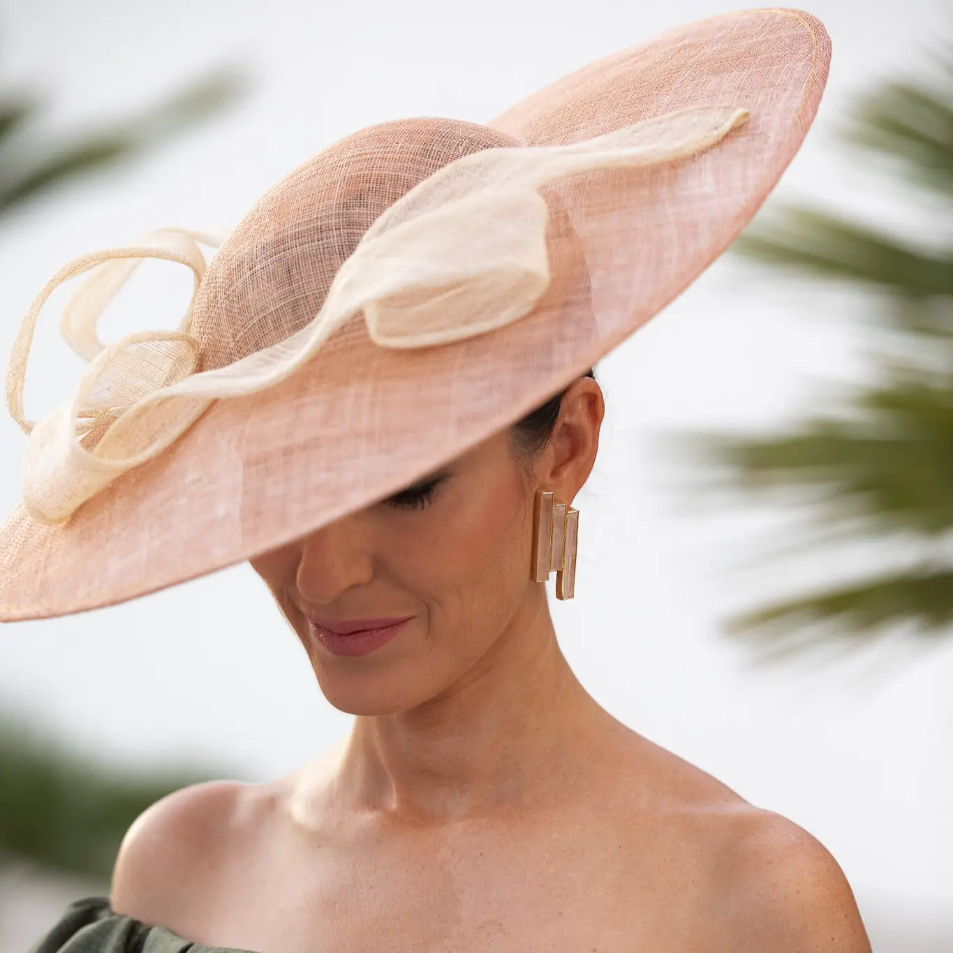 Pendientes de tres líneas verticales, a distintas alturas, con piedras rectangulares alargadas.