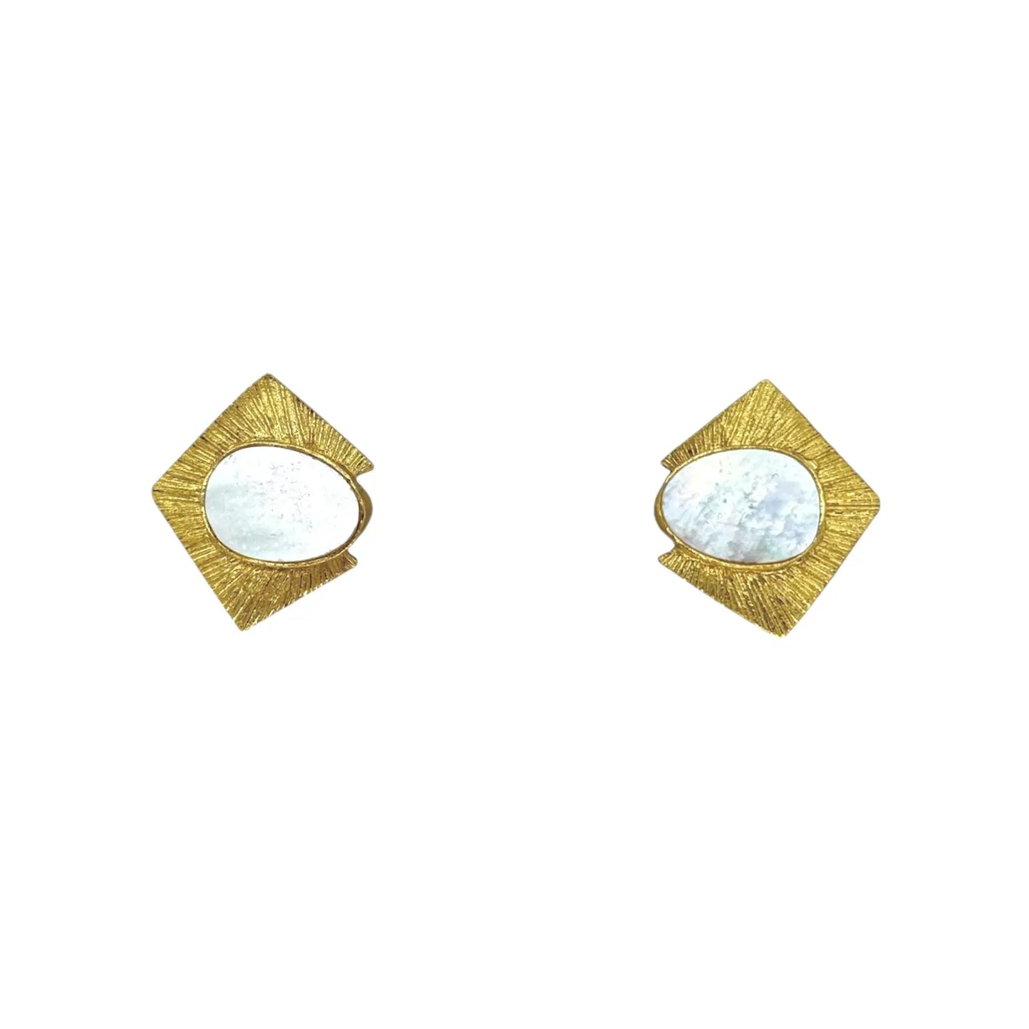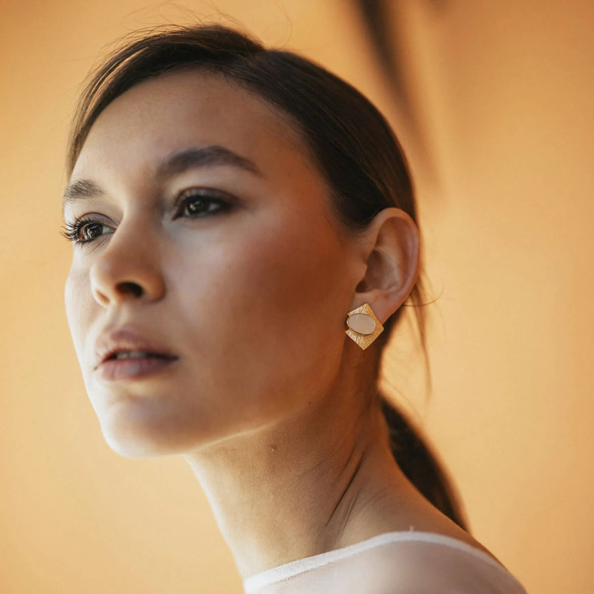 Estos pendientes están compuestos por una figura geométrica con un diseño limpio y moderno, en la cual se sitúa una piedra de forma ovalada en su centro. La combinación de la estructura geométrica y la piedra aporta un toque de elegancia y sofisticación, haciendo de estos pendientes una opción ideal para complementar cualquier atuendo. Su diseño minimalista resalta la belleza de la piedra, convirtiéndolos en un accesorio llamativo y versátil.