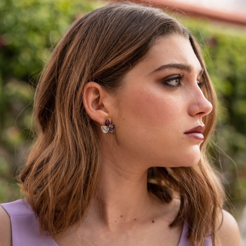 Pendientes Mini Yoga Ed. Limitada Morado Amatista, Rosa y Rosa claro