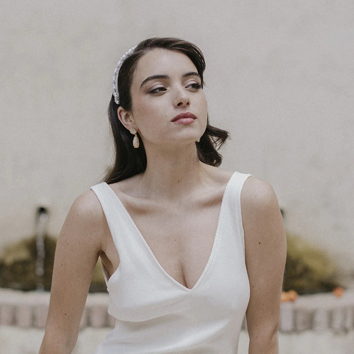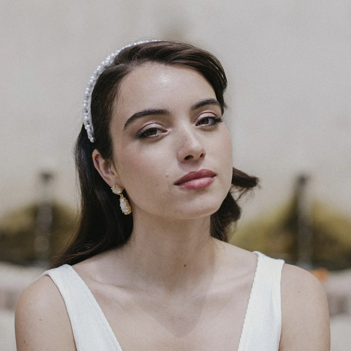 Pendientes formados por dos piedras: una superior redonda y otra en forma de óvalo que cuelga delicadamente. La piedra redonda en la parte superior añade un toque de equilibrio y simetría, mientras que la piedra ovalada que cuelga agrega un elemento de movimiento y elegancia. Esta combinación de formas crea un diseño armonioso y versátil que puede complementar una variedad de conjuntos. Estos pendientes son ideales para aquellos que buscan una pieza que sea moderna y sofisticada, pero también elegante y atemporal en su estilo.