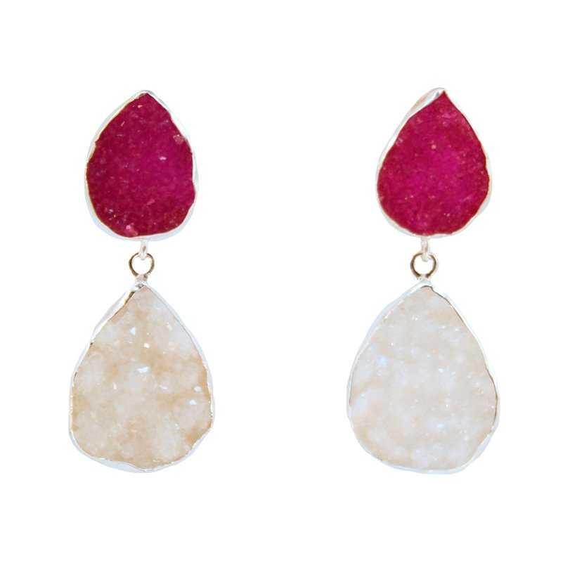 Pendientes artesanales que fusionan la destreza manual con la belleza natural. Dos piedras en forma de gota se juntan, creando una obra única que refleja la artesanía excepcional y añade un toque de encanto a tu estilo.
